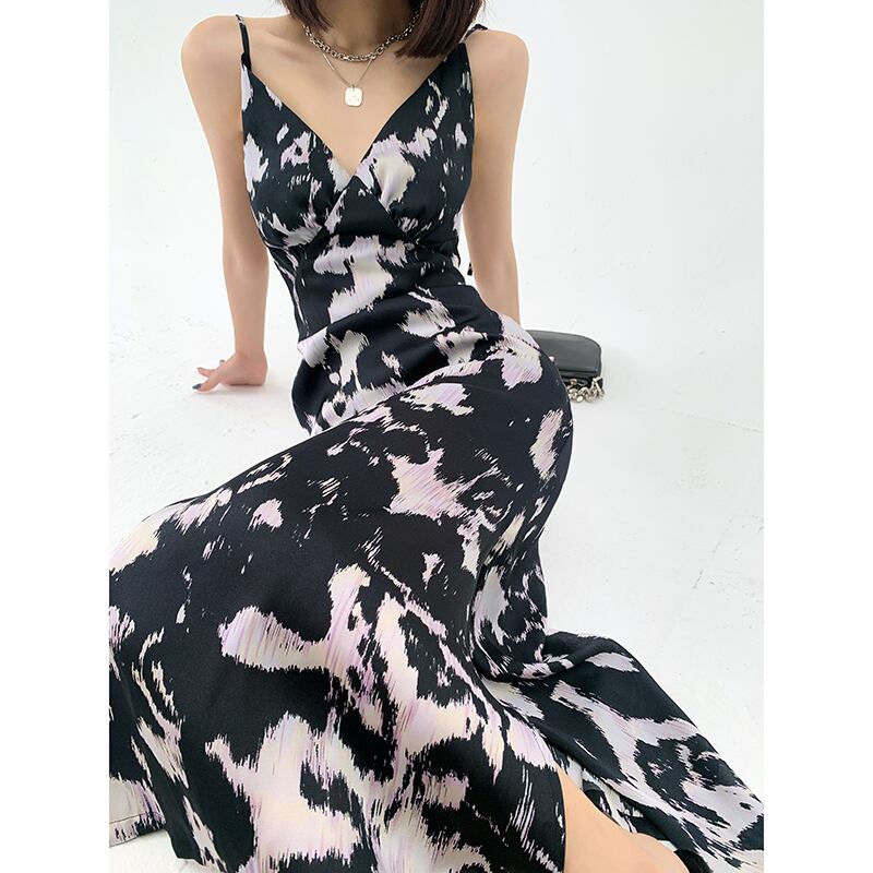 ワンピース デート ロング丈 袖なし ノースリーブ Vネック スリム タイト 細身 ハイウエスト 透け感 大人可愛い きれいめ 大人 おしゃれ お洒落 かっこいい エスニック エキゾチック 大人可愛い 大人女子 こなれ感 個性的 クール モード系 セクシー モダン 主役級 存在感 とろみ感 抜け感 柄 プリント 夏 レディース 学生 通学 デート お出かけ 女子会 休日 パーティー イベント リゾート 旅行 海 プール ホテル ガーデン レストラン モテ S M L XL ホワイト ブラック | Raforea