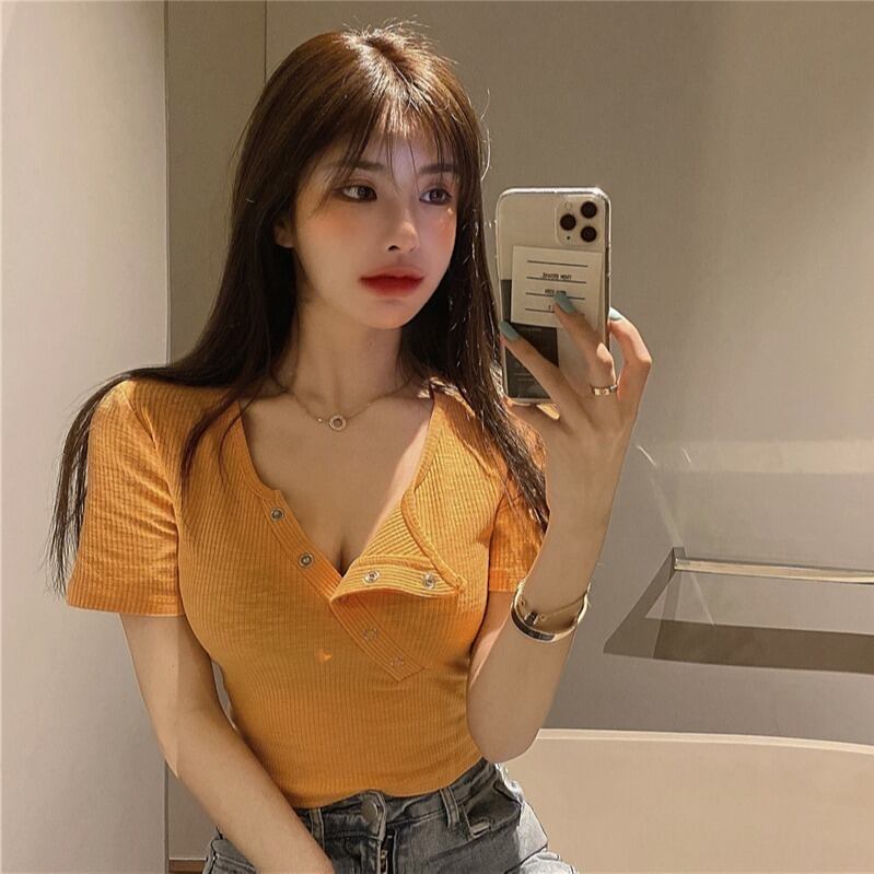 トップス Tシャツ 袖あり 半袖 Vネック スリム タイト 細身 ストレート かわいい 大人可愛い きれいめ シンプル カジュアル おしゃれ こなれ感 ラフ 個性的 クール モード系 セクシー 無地 夏 10代 20代 レディース 女性用 学生 通学 デート お出かけ 女子会 パーティー イベント リゾート 海 プール モテ トレンド インスタ映え S M L 白 ホワイト 黒 ブラック 緑 グリーン 黄色 イエロー | Raforea