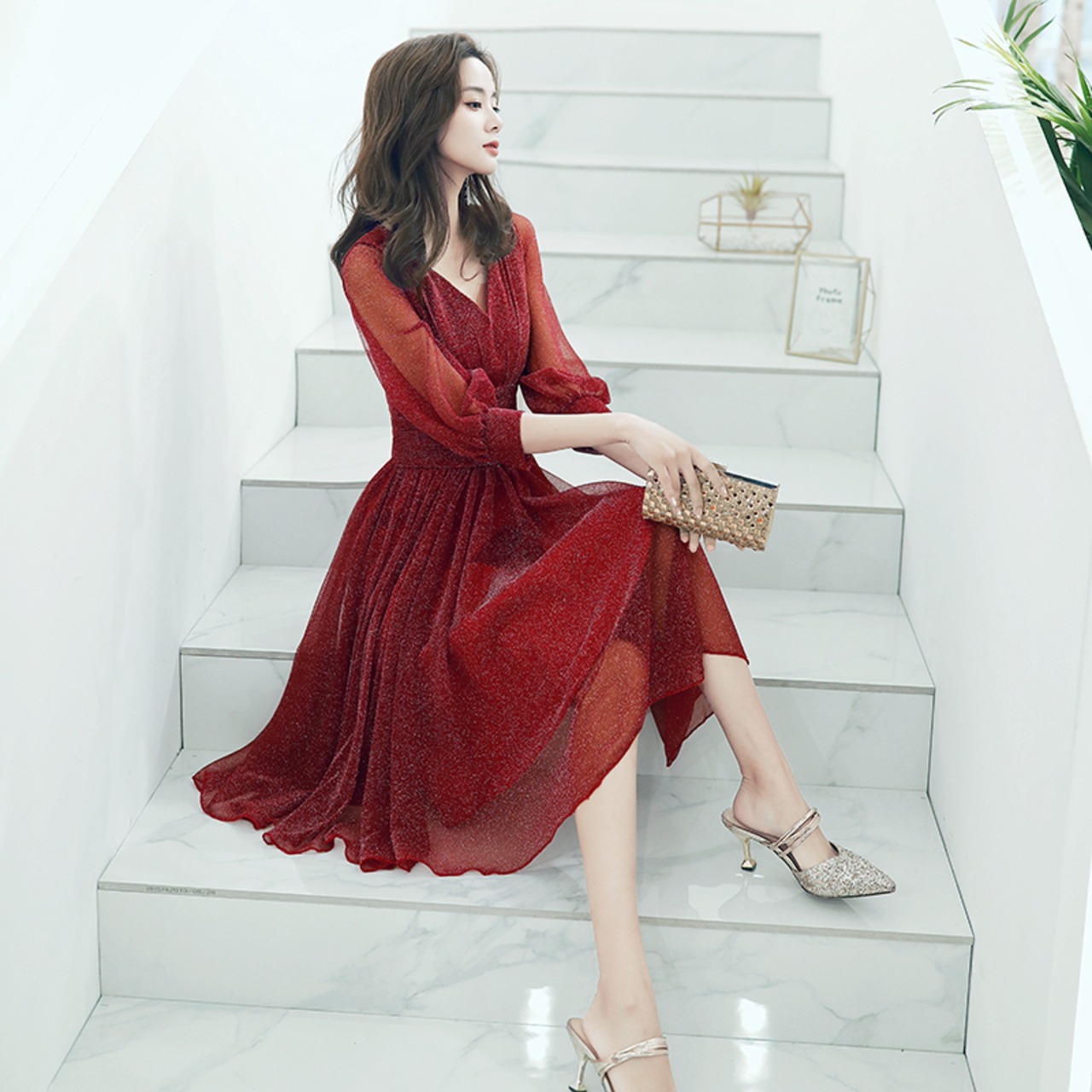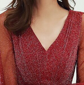 ワンピース フレアワンピース ワンピドレス 膝丈 ひざ丈 袖あり 長袖 Vネック スリム Aライン シフォン 透け感 大人可愛い きれいめ シンプル 大人 上品 おしゃれ 個性的 クール モード系 セクシー エレガント モダン 無地 春 夏 結婚式 二次会 披露宴 20代 30代 40代 レディース 女性用 女子会 パーティー イベント リゾート ホテル レストラン トレンド インスタ映え S M L XL 2XL 3XL 赤 レッド | Raforea