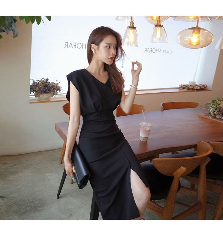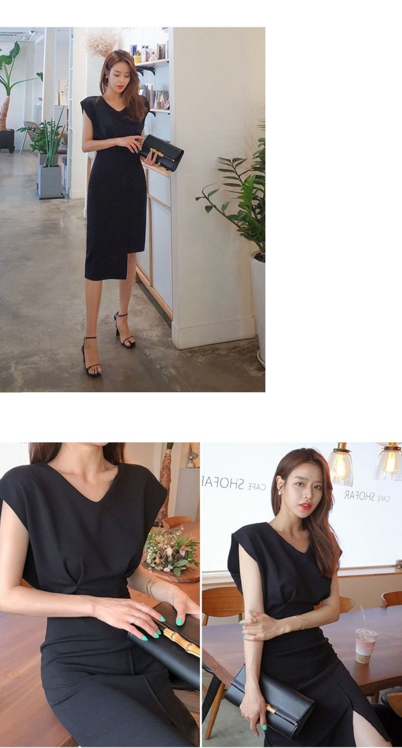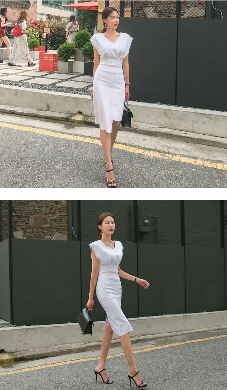 ワンピース プルオーバー オールインワン ペンシルスカート タイトスカート ひざ丈 ノースリーブ Vネック 襟なし タイト ストレート Iライン ファスナー 大人可愛い シンプル アジアン こなれ感 無地 春 夏 10代 20代 30代 オフィス OL 通勤 お出かけ 公園デビュー 休日 韓国 ir サイズ S M L XL 色展開 白 黒 黄色 | Raforea