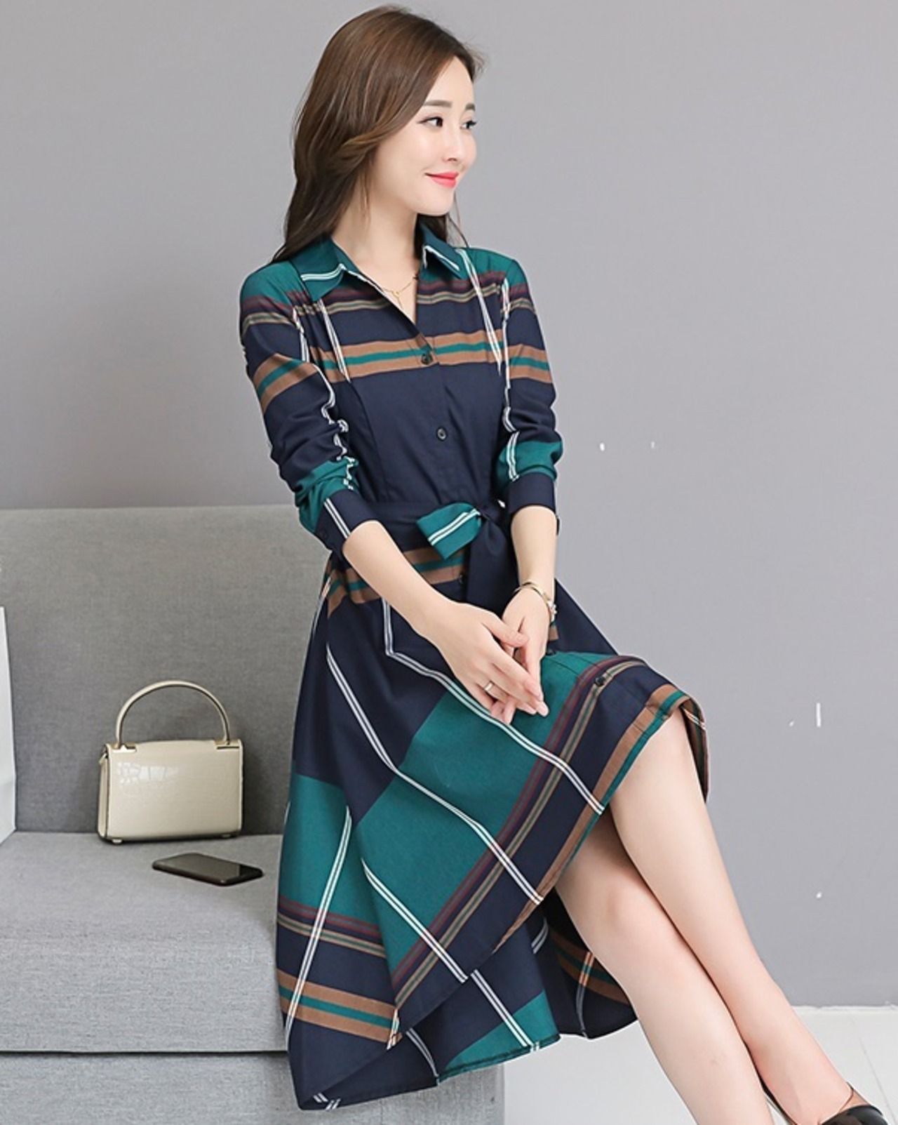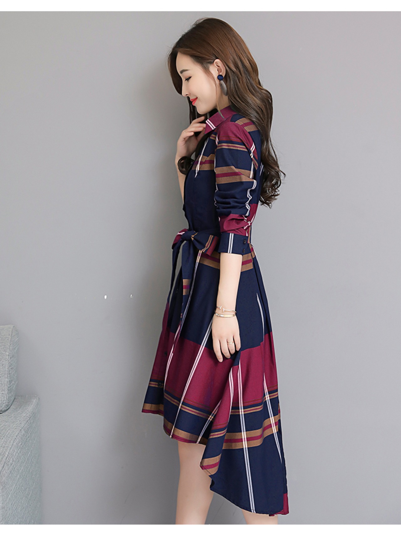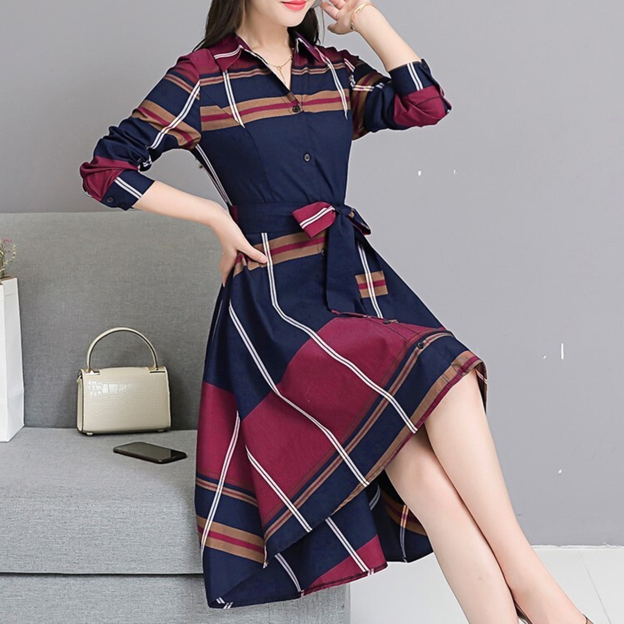 ワンピース シャツワンピース ワンピドレス ミディアム丈 袖あり 長袖 襟付き アシンメトリー リボン ウエストマーク ウエストリボン かわいい 大人可愛い きれいめ 大人 上品 おしゃれ お洒落 レトロ 大人可愛い 大人女子 こなれ感 個性的 チェック柄 10代 20代 30代 40代 レディース 女性用 OL 学生 デート お出かけ 普段使い 韓国 韓国系 ファッション コーデ スタイル モテ インスタ映え S M L XL 2XL 3XL 赤 レッド 緑 グリーン | Raforea