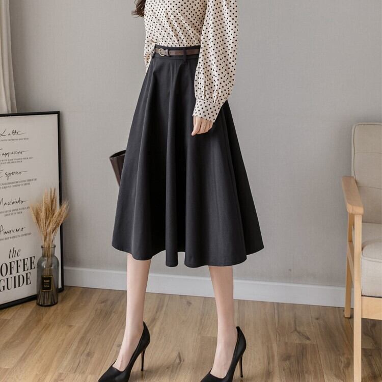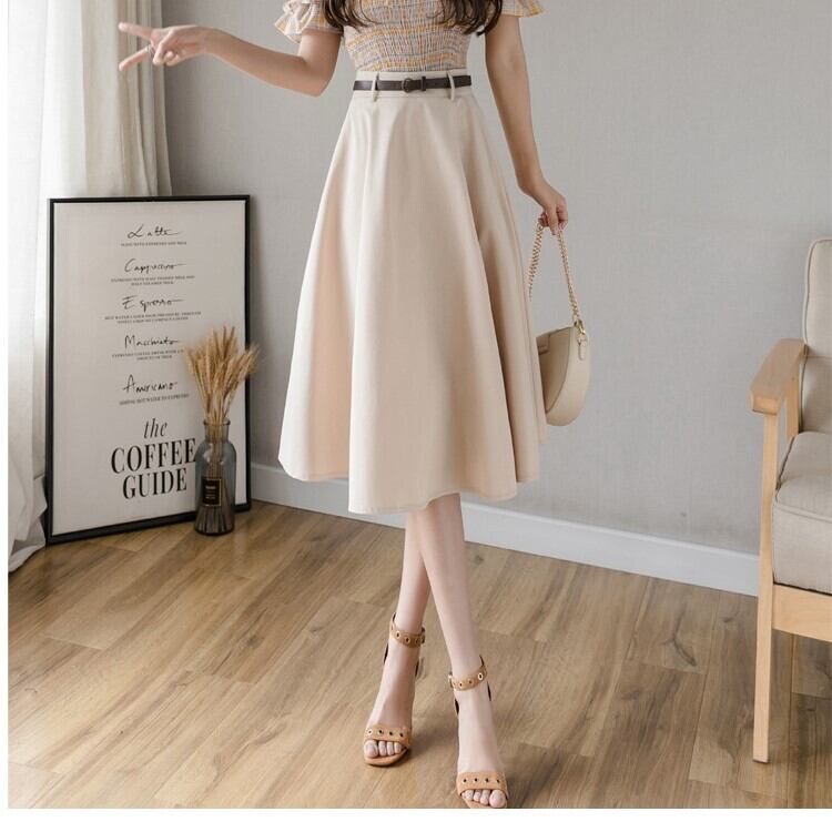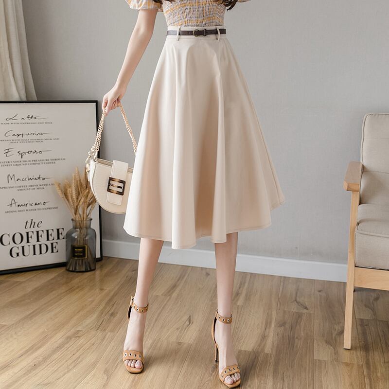 スカート ロングスカート フレアスカート 膝下 ミモレ丈 Aライン ベルト ウエストマーク ハイウエスト 薄手 大人可愛い きれいめ シンプル 大人 上品 おしゃれ 大人女子 無地 夏 20代 30代 レディース OL 通勤 デート 着回し 普段使い モテ 脚長 S M L XL 2XL 白 ホワイト 黒 ブラック | Raforea