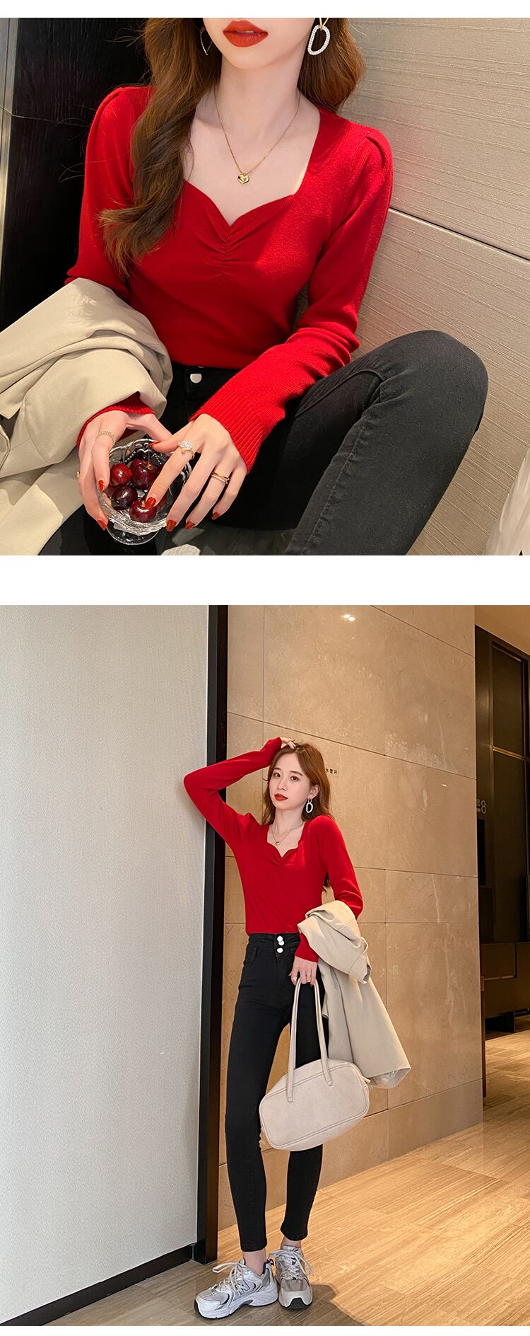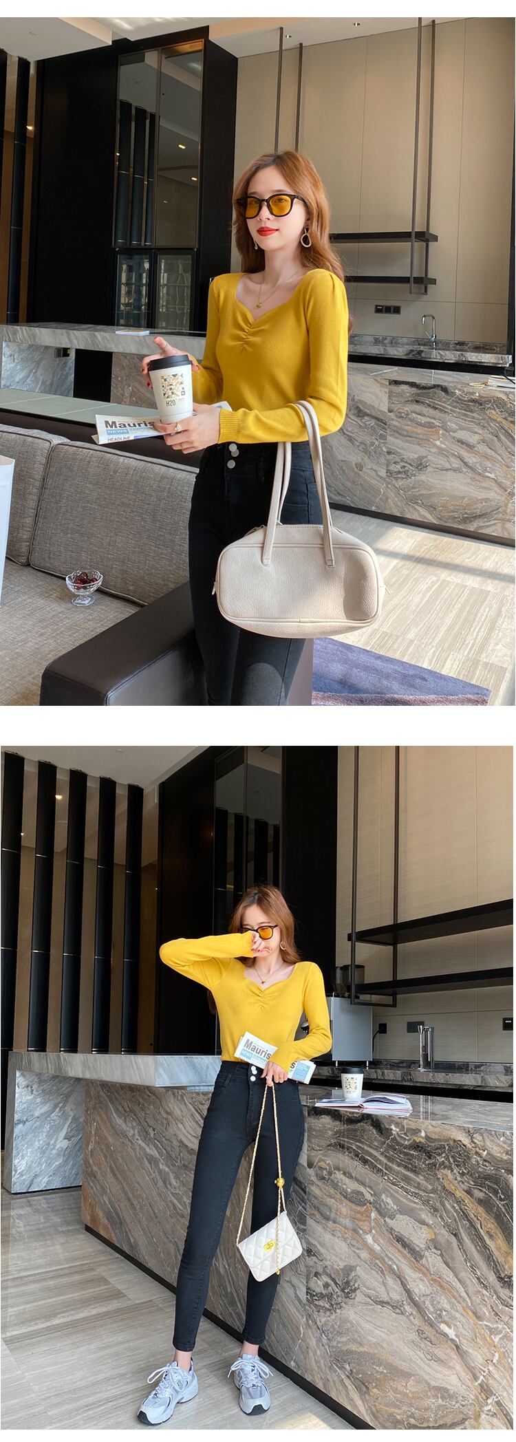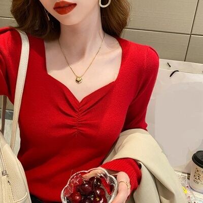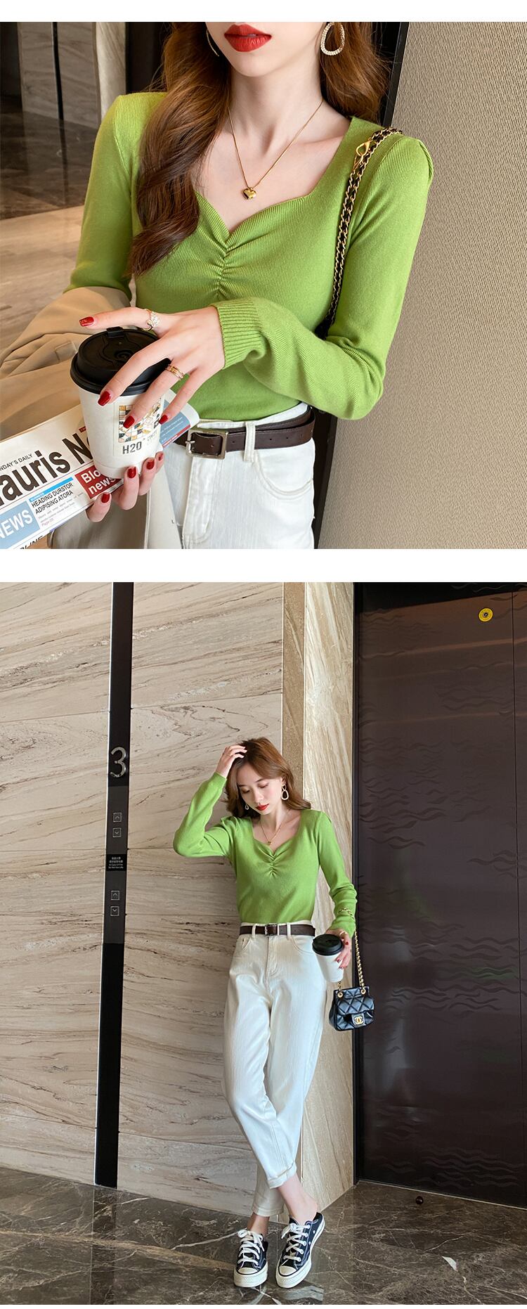 トップス ニットソー セーター 袖あり 長袖 Vネック 襟なし 伸縮性 綿 薄手 大人可愛い シンプル カジュアル こなれ感 無地 春 秋 10代 20代 30代 学生 通学 お出かけ 公園デビュー 女子会 休日 普段使い 韓国 ir サイズ S M L 色展開 ホワイト ブラック グリーン イエロー オレンジ ワインレッド ライトブルー | Raforea