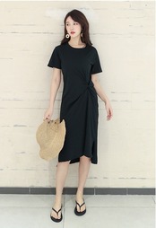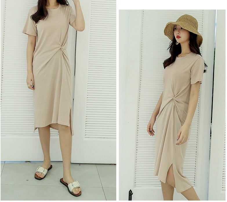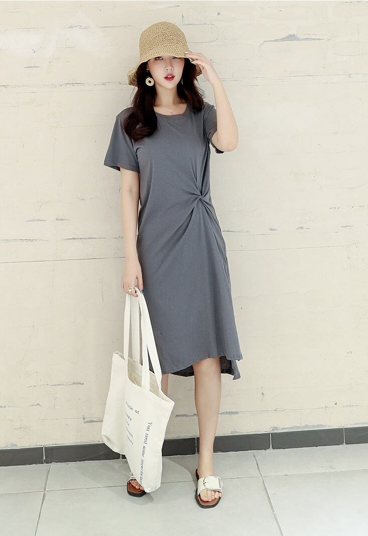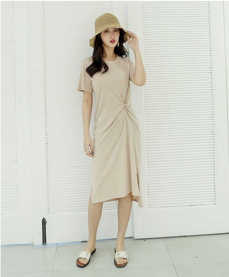 ワンピース Tシャツ シャツワンピース ひざ丈 袖あり 半袖 ラウンドネック Aライン かわいい 大人可愛い シンプル カジュアル 大人 おしゃれ お洒落 大人可愛い 大人女子 こなれ感 ラフ キュート 春 夏 10代 20代 30代 レディース 女性用 女の子 着回し 普段使い 重ね着 韓国 韓国系 ファッション コーデ スタイル 楽ちん インスタ映え L XL 2XL 大きいサイズ 大きい ビッグサイズ ゆったり ゆる 黒 ブラック 灰色 グレー ネイビー アプリコット | Raforea