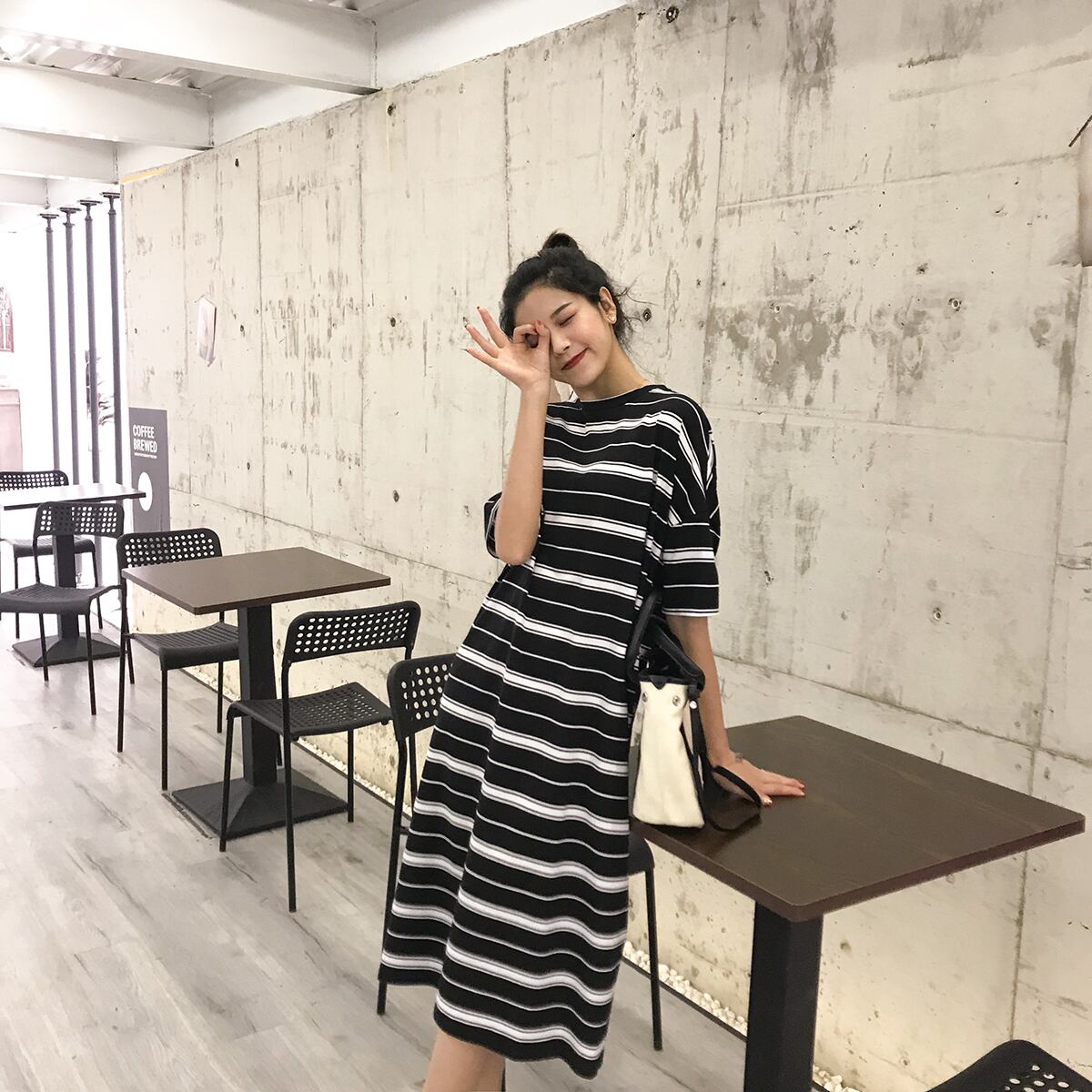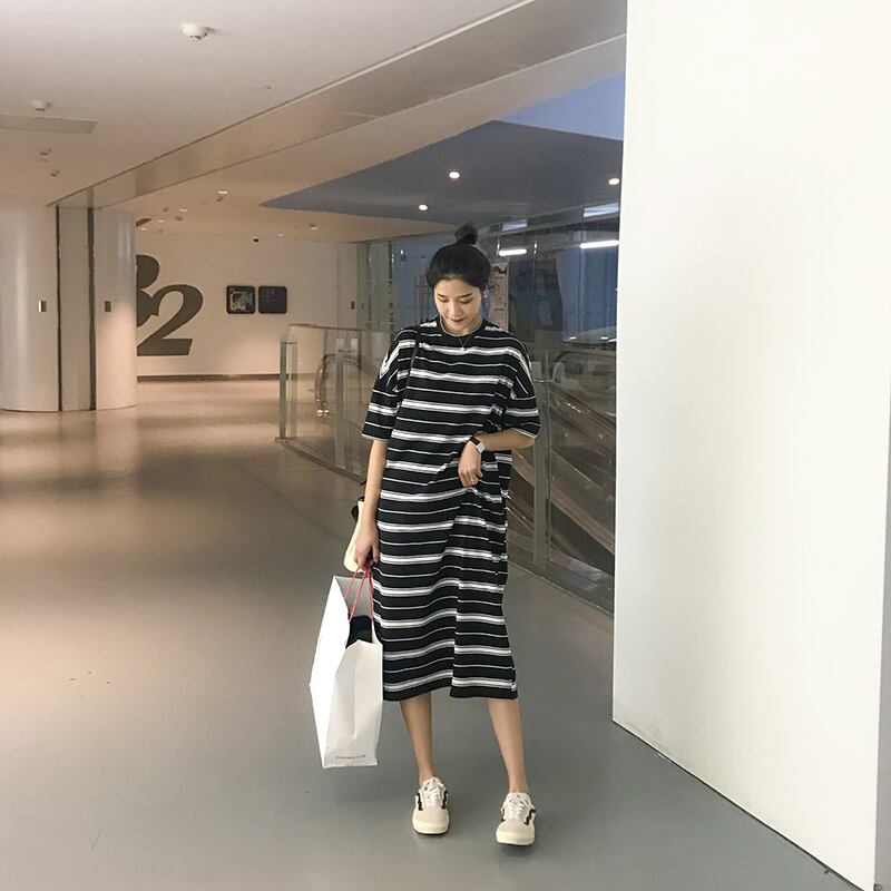 ワンピース Tシャツ シャツワンピース ひざ丈 袖あり 半袖 ラウンドネック かわいい 大人可愛い シンプル カジュアル 大人 おしゃれ お洒落 レトロ 大人可愛い 大人女子 こなれ感 ラフ ボーダー 春 夏 10代 20代 30代 レディース 女性用 ママ マタニティ 女の子 着回し 普段使い 重ね着 体系カバー M L XL 2XL 3XL 白 ホワイト 黒 ブラック | Raforea