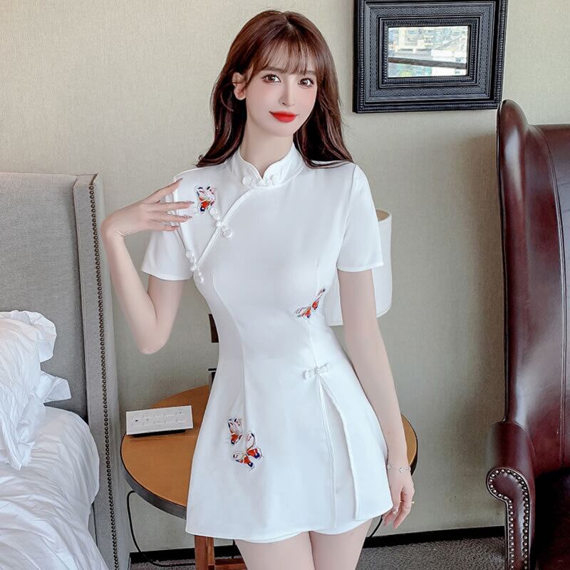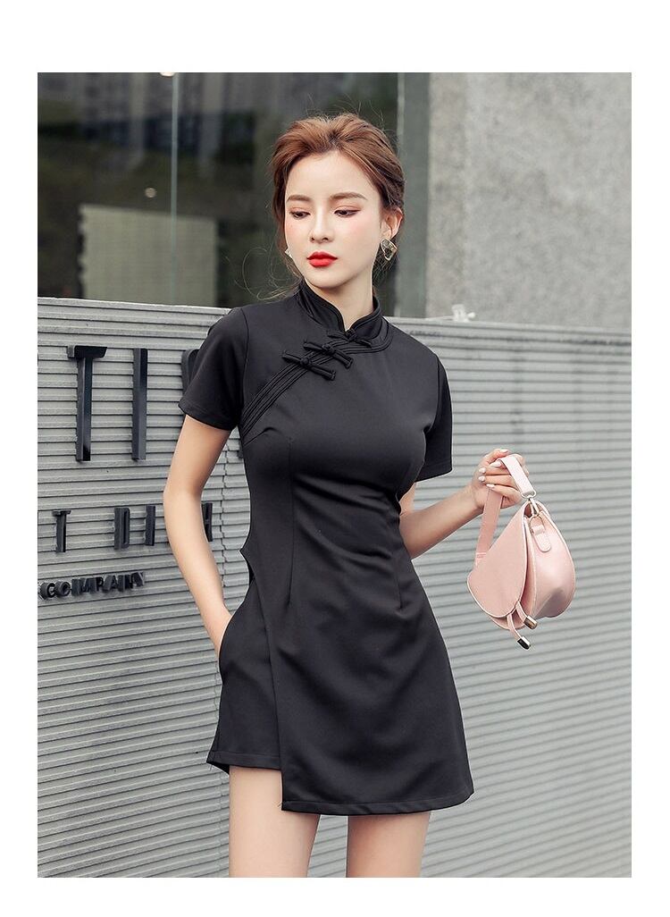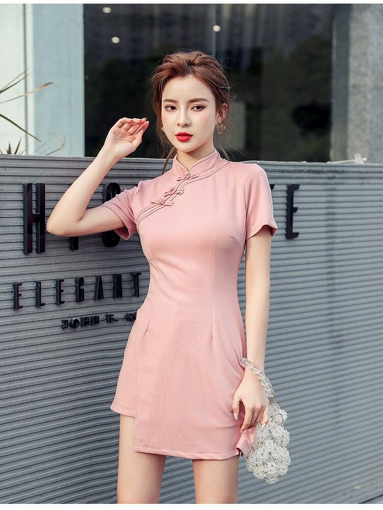 中国伝統のチーパオのスカート丈を短くし