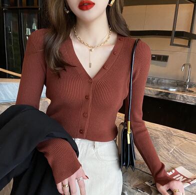 トップス カットソー カーディガン 袖あり 長袖 萌袖 Vネック 襟なし タイト 細身 リブニット かわいい 大人可愛い きれいめ シンプル カジュアル 大人 上品 おしゃれ お洒落 大人女子 こなれ感 ラフ マニッシュ 抜け感 無地 シーズンレス 20代 30代 レディース デート お出かけ 女子会 休日 着回し 普段使い 韓国 韓国系 オルチャン ファッション コーデ スタイル モテ トレンド 色展開 黒 パープル ブラウン ベージュ カーキ 大人カラー ニュアンスカラー | Raforea