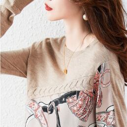 トップス カットソー ニットソー 袖あり 長袖 Uネック 襟なし 切り替えデザイン 異素材MIX 大人可愛い きれいめ カジュアル 大人 上品 おしゃれ お洒落 かっこいい 大人可愛い 大人女子 こなれ感 ラフ 個性的 エレガント モダン 主役級 存在感 柄 プリント 20代 30代 40代 レディース デート お出かけ 女子会 休日 旅行 着回し 普段使い ファッション コーデ モテ インスタ映え くすみカラー 大人カラー | Raforea