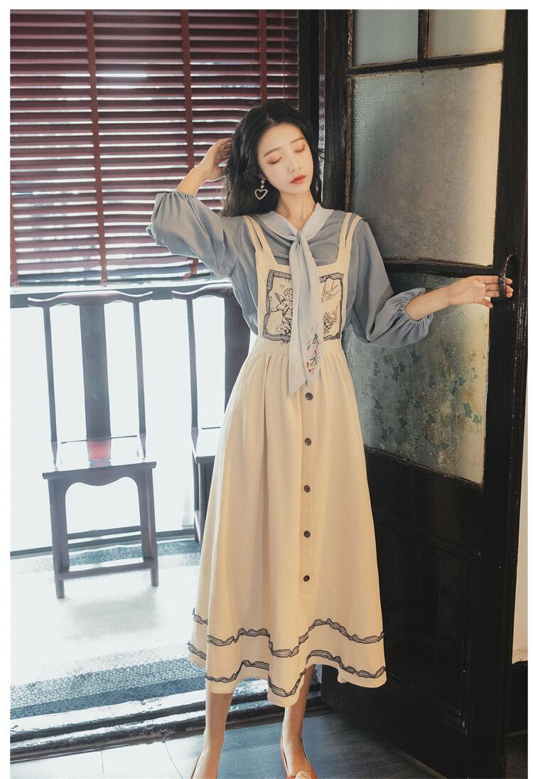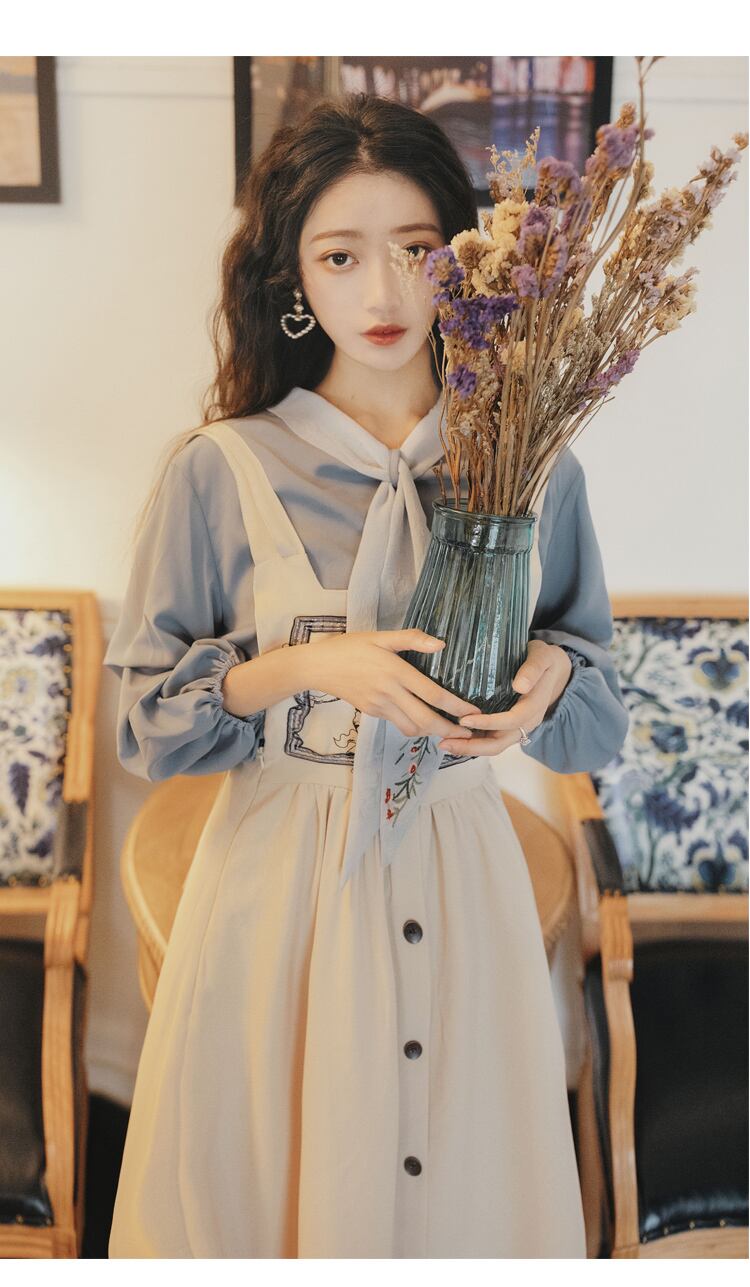色展開 アプリコット(シャツ) グレーブルー(ストラップドレス)