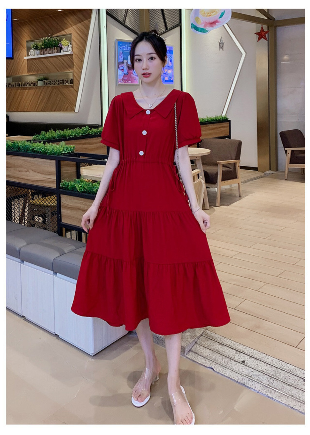 マタニティワンピース ワンピース ティアードワンピース ひざ丈 ミモレ丈 ミディアム丈 袖あり 5分袖 五分袖 パフスリーブ ラウンドネック 襟付き フレア Aライン シフォン ウエストマーク ハイウエスト 伸縮性 かわいい 大人可愛い きれいめ シンプル カジュアル 大人 上品 おしゃれ お洒落 レトロ 大人可愛い 大人女子 こなれ感 ラフ ラブリー キュート ガーリー エレガント とろみ感 抜け感 無地 春 夏 レディース M L XL 2XL 黒 ブラック 赤 レッド ミントグリーン | Raforea