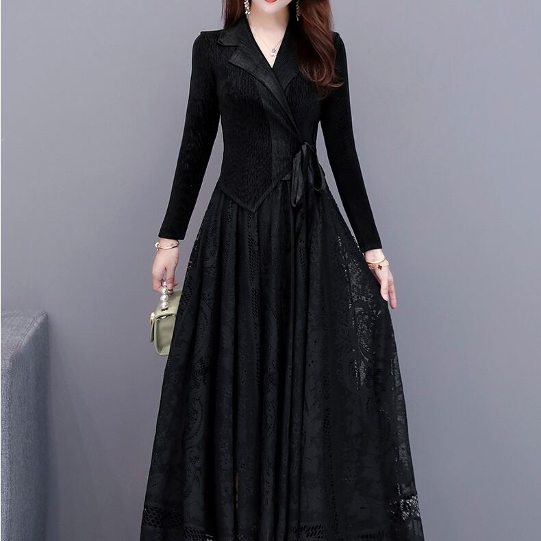 ドレス ワンピース パーティードレス パーティドレス 結婚式ドレス 演奏会ドレス 膝下 袖あり 長袖 Vネック Aライン プリンセス 切り替えデザイン レース 伸縮性 かわいい 大人可愛い きれいめ 大人 上品 おしゃれ 大人可愛い 大人女子 クール モード系 セクシー エレガント フォーマル フォーマル 無地 20代 30代 レディース 女性用 OL 学生 高見え 流行 インスタ映え 秋 冬 結婚式 二次会 披露宴 お呼ばれ M L XL 2XL 3XL 4XL 黒 ブラック 赤 レッド