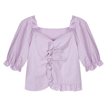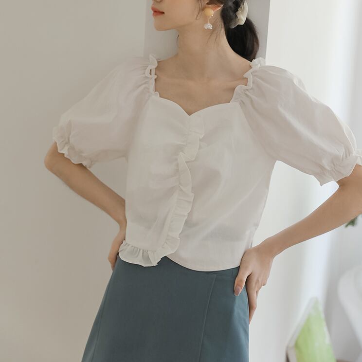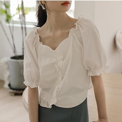 トップス シャツ ブラウス ショート ショート丈 半袖 5分袖 パフスリーブ スクエアネック フリル ハイウエスト 大人可愛い きれいめ 大人 上品 おしゃれ お洒落 レトロ 大人女子 ラブリー キュート ガーリー 無地 春 夏 秋 10代 20代 30代 オフィス OL 通勤 学生 通学 デート お出かけ 女子会 休日 イベント リゾート 旅行 レストラン 着回し 普段使い 韓国系 体系カバー インスタ映え S M L 白 ホワイト 紫 オレンジ | Raforea