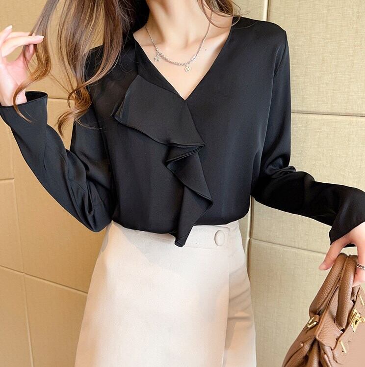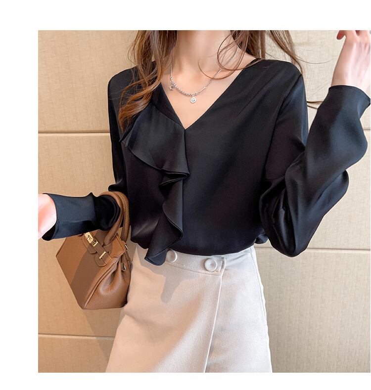 トップス シャツ ブラウス 襟なし Vネック 袖あり 長袖 シフォン ストレート フリル かわいい 大人可愛い きれいめ おしゃれ 大人女子 こなれ感 抜け感 存在感 個性的 クール キュート 春 夏 秋 無地 10代 20代 30代 40代 レディース 学生 女の子 OL ママ デート お出かけ 女子会 休日 イベント 旅行 リゾート ホテル レストラン 普段使い 韓国系 コーデ スタイル 楽ちん 体系カバー プレゼント ギフト 誕生日 モテ S M L XL 2XL ホワイト ブラック | Raforea
