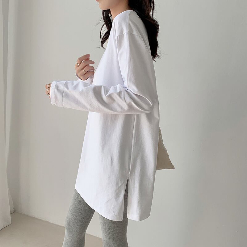 トップス カットソー チュニック 白トップス 袖あり 長袖 ラウンドネック 襟なし ストレート スリット かわいい 大人可愛い きれいめ シンプル カジュアル 大人 上品 おしゃれ お洒落 レトロ 大人可愛い 大人女子 こなれ感 ラフ 抜け感 無地 春 夏 レディース ビジネス OL 通勤 学生 通学 デート お出かけ 女子会 楽ちん 体系カバー S M L XL 2XL 白 ホワイト | Raforea