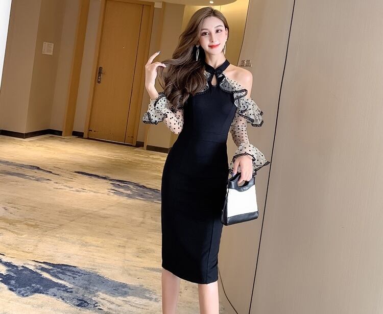 ワンピース パーティードレス 結婚式のドレス 二次会ドレス Iラインドレス ワンピースドレス セクシードレス 膝丈 マキシ丈 袖なし ノースリーブ ホルターネック Iライン スレンダーライン 細身 フリル ブロケード 大人 上品 セクシー エレガント エレガント 大人可愛い 華やか 存在感 無地 10代 20代 パーティー イベント レストラン 夏 秋 二次会 お呼ばれ パーティー サイズ S M L XL 色展開 黒 | Raforea