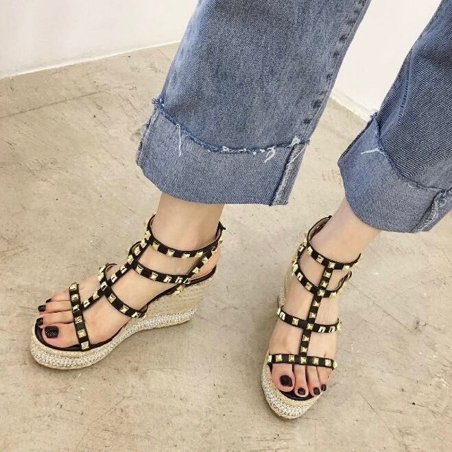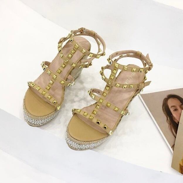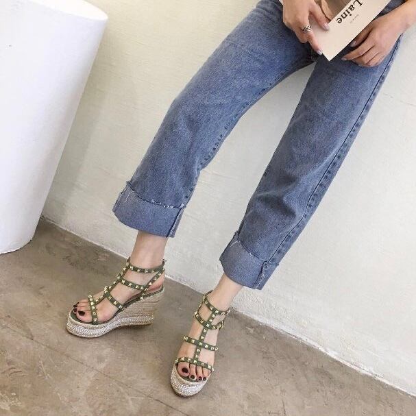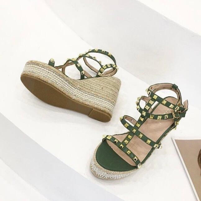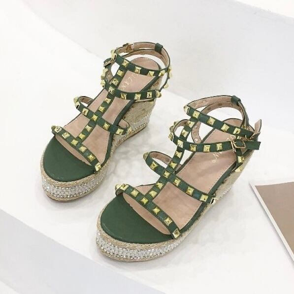 スタッズ付き ウェッジソール サンダル パンプス ミュール シューズ 靴 ウェッジ くつ クツ コルクヒール サンダル ヒール 10cm かわいい 大人可愛い シンプル カジュアル おしゃれ お洒落 無地 春 夏 10代 20代 30代 レディース 女性用 ママ デイリー 普段使い お揃い 韓国 韓国系 ファッション コーデ スタイル モテ インスタ映え 22.5cm 23.0cm 23.5cm 24.0cm 24.5cm ベージュ 黒 ブラック 緑色 グリーン | Raforea