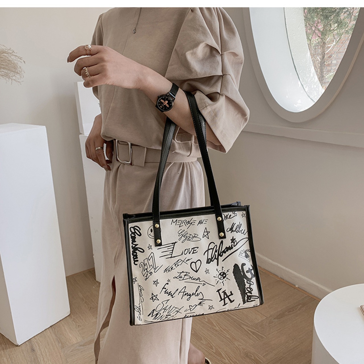 バッグ カバン 鞄 レディースバッグ ショルダーバッグ トートバッグ 通勤バッグ 肩掛けバック スクエア型 四角 ファスナー かわいい 大人可愛い きれいめ カジュアル 大人 おしゃれ レトロ 大人可愛い 大人女子 こなれ感 ラフ ラブリー キュート ガーリー モード系 柄 プリント キャラクター オフィス ビジネス OL 通勤 学生 通学 デート お出かけ 公園デビュー 女子会 休日 デイリー 普段使い オールシーズン 白 ホワイト 黒 ブラック モノトーン | Raforea
