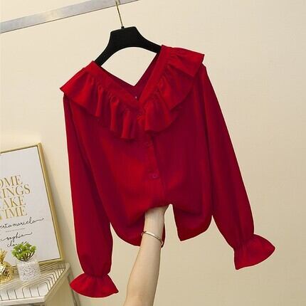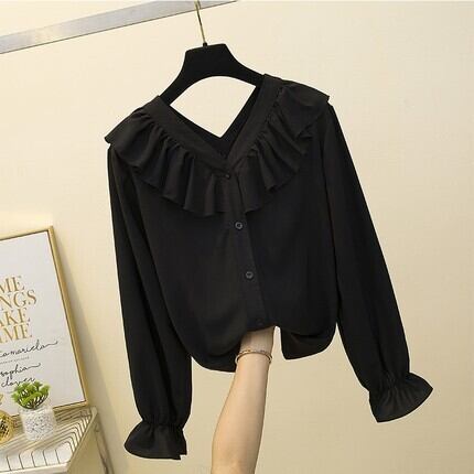 トップス シャツ ブラウス 袖あり 長袖 ボリューム袖 Vネック 襟付き ワイド フリル 前開き かわいい 大人可愛い きれいめ シンプル カジュアル 大人 上品 おしゃれ お洒落 レトロ 大人可愛い 大人女子 こなれ感 ラブリー キュート ガーリー エレガント モダン 主役級 存在感 無地 OL 通勤 学生 通学 デート お出かけ 女子会 休日 ホテル 着回し 普段使い 韓国系 オルチャン ファッション コーデ モテ 大きいサイズ 大きい 大きめ ビッグサイズ ゆったり ゆる サイズ 白 | Raforea