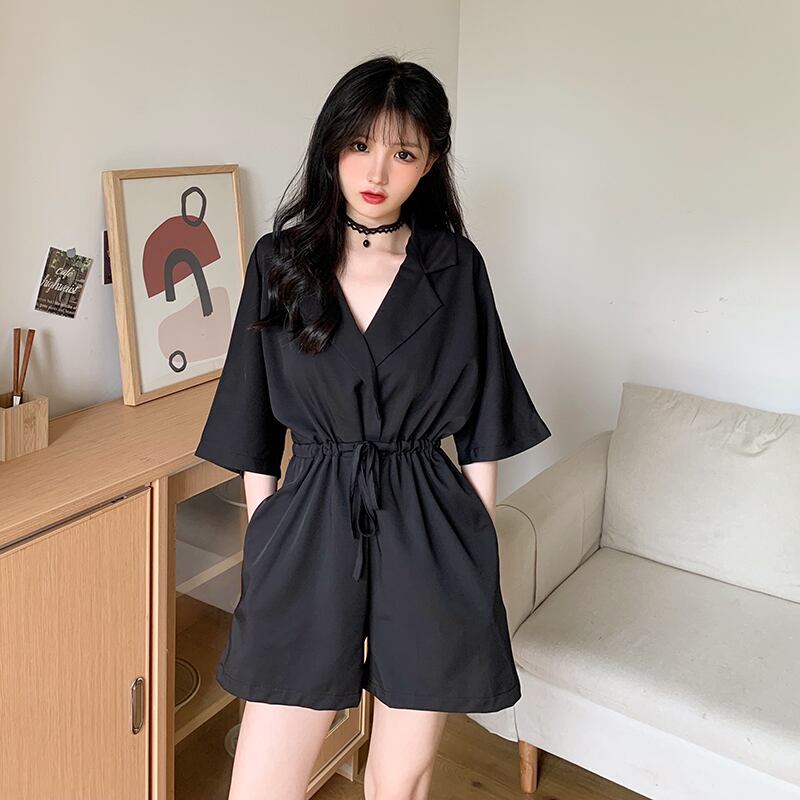 ジャンプスーツ オールインワン ミニ丈 ショート丈 膝上 袖あり 半袖 五分袖 Vネック 襟付き ウエストマーク ウエストリボン ハイウエスト ウエストゴム かわいい カジュアル 大人 上品 おしゃれ お洒落 かっこいい レトロ エキゾチック 大人可愛い 大人女子 こなれ感 ラフ ラブリー キュート ガーリー ルーズ 個性的 セクシー とろみ感 抜け感 無地 春 夏 レディース デート お出かけ 女子会 S M L XL 2XL 3XL 4XL 5XL パープル ブラック | Raforea