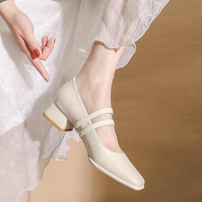 レディースシューズ 靴 くつ スクエアトゥ メリージェーンパンプス 4cmヒール ダブルストラップ 痛くない 歩きやすい 疲れにくい 柔らかい 大人可愛い シンプル 上品 レトロ エレガント きちんと感 無地 春 夏 秋 冬 オールシーズン 10代 20代 30代 40代 レディース オフィス ビジネス OL 通勤 学校行事 セレモニー お出かけ 女子会 休日 旅行 リクルート 就活 デイリー 22cm 22.5cm 23.0cm 23.5cm 24.0cm 24.5cm 黒 ブラック オフホワイト | Raforea