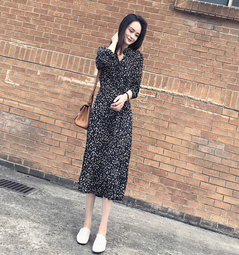 ドレス ワンピース 袖あり 長袖 ロング 膝下 ポリエステル シフォン かわいい 大人可愛い きれいめ おしゃれ 大人女子 こなれ感 抜け感 存在感 個性的 キュート クール 春 リーフ柄 小花柄 10代 20代 30代 40代 50代 レディース 学生 ママ 女の子 デート お出かけ 女子会 休日 イベント 旅行 リゾート ホテル レストラン パーティー 普段使い 韓国系コーデ スタイル 楽ちん 体系カバー プレゼント ギフト 誕生日 モテ S M L XL 2XL ブラック | Raforea