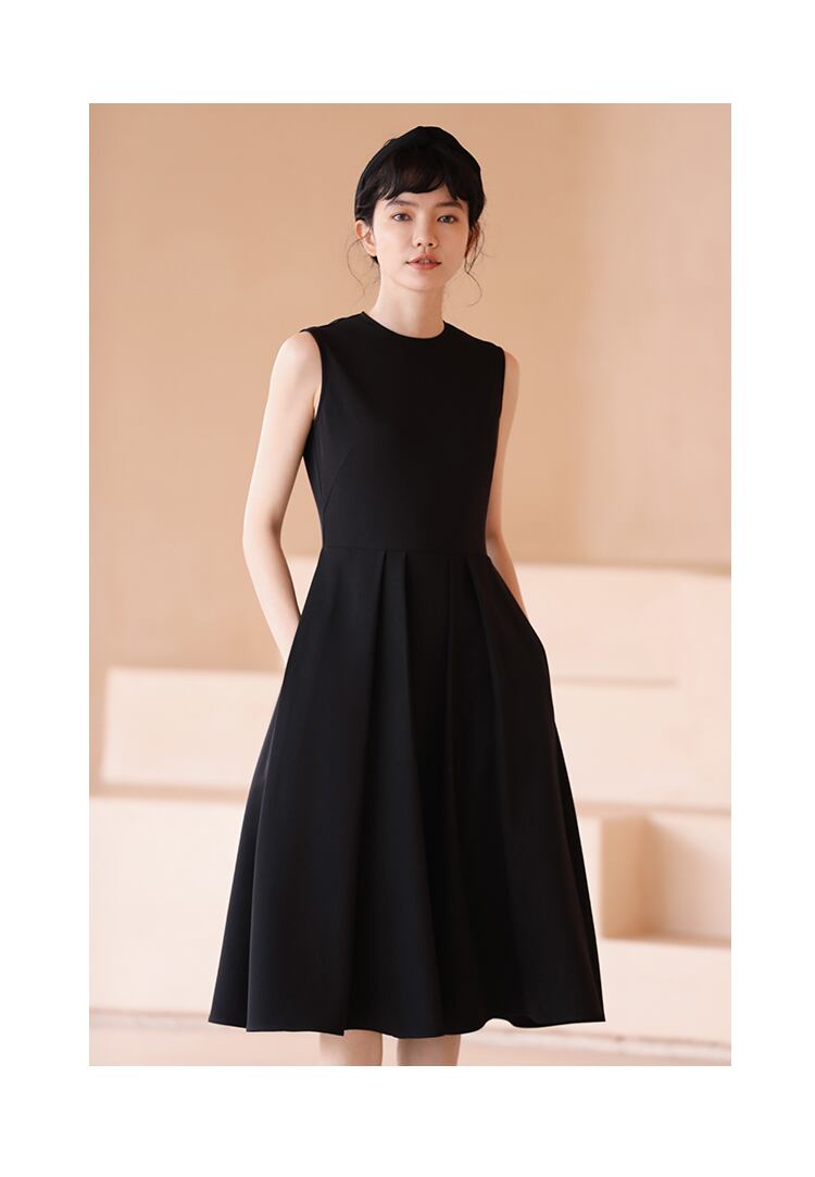 ワンピース フレアワンピース マキシ丈 袖なし Uネック 襟なし フレア ポリエステル 大人可愛い シンプル レトロ 大人女子 無地 春 秋 20代 30代 40代 お出かけ 女子会 お泊まり 休日 普段使い サイズ S M L XL 色展開 ブラック | Raforea