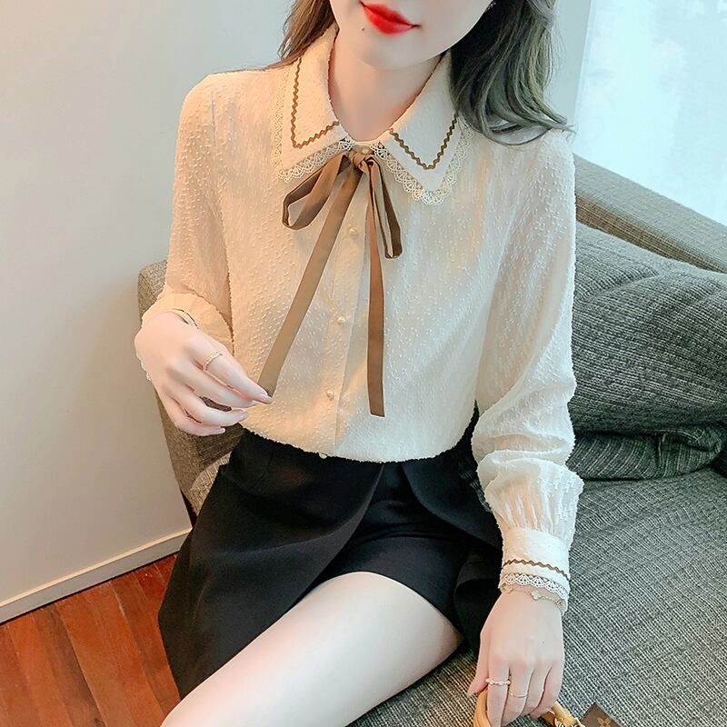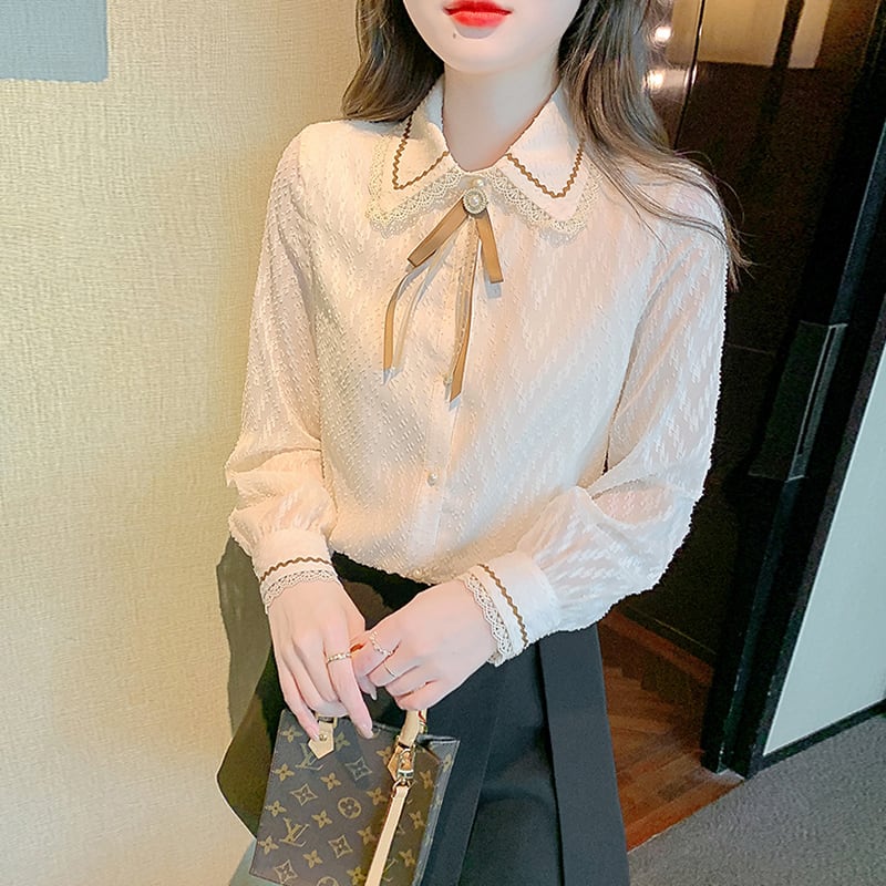 トップス シャツ ブラウス 袖あり 長袖 襟付き レース 刺繍 リボン かわいい 大人可愛い きれいめ シンプル カジュアル 大人 上品 おしゃれ お洒落 かっこいい アジアン 大人可愛い 大人女子 ラフ メンズライク スポーティー ガーリー ルーズ 個性的 無地 春 秋 10代 20代 40代 レディース 女性用 学生 通学 デート お出かけ 女子会 休日 リゾート 旅行 トレンド インスタ映え S M L XL 2XL 白 ホワイト | Raforea