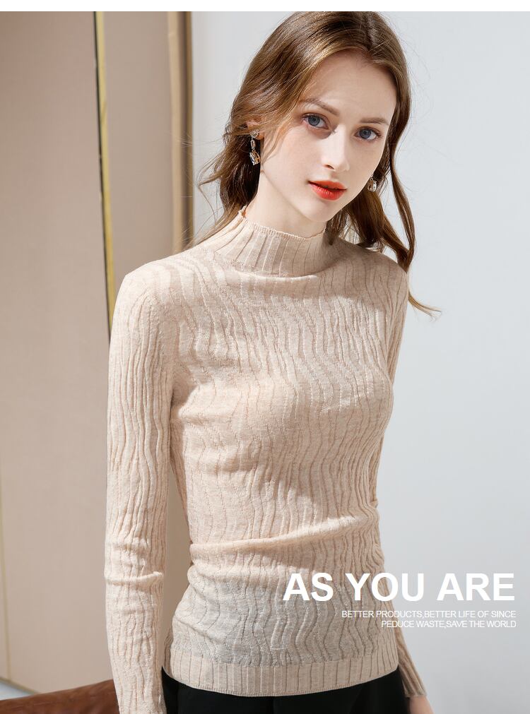 シンプルなデザインのボルトネックセーター。