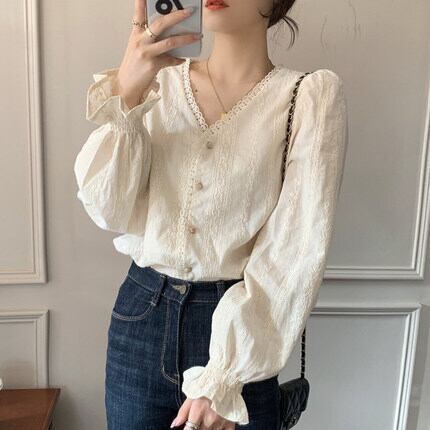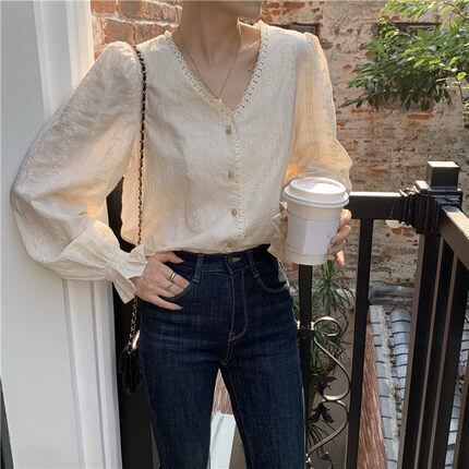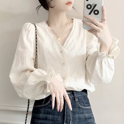 トップス シャツ ブラウス 袖あり 長袖 ボリューム袖 Vネック 襟なし レース 刺繍 かわいい 大人可愛い きれいめ シンプル カジュアル 大人 上品 おしゃれ お洒落 レトロ 大人可愛い 大人女子 こなれ感 ラブリー キュート ガーリー 主役級 存在感 抜け感 小花柄 10代 20代 30代 レディース 学生 通学 デート お出かけ 女子会 休日 着回し 普段使い 韓国 韓国系 オルチャン ファッション コーデ モテ インスタ映え オフホワイト くすみカラー | Raforea