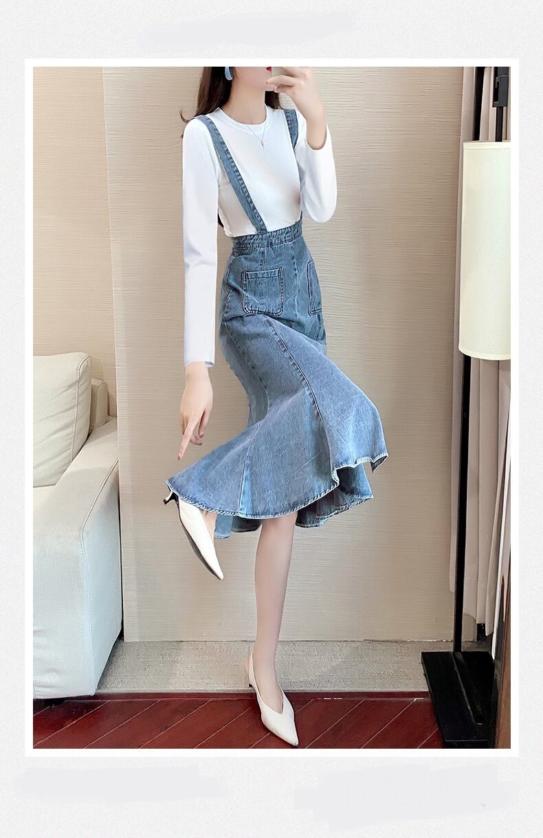 白シャツとデニムスカートのセット販売。