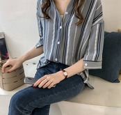 トップス シャツ Vネック 袖あり 5分丈 ボタン ストレート かわいい 大人可愛い きれいめ カジュアル おしゃれ 大人女子 こなれ感 抜け感 存在感 個性的 ゆる キュート ラフ 秋 ストライプ 10代 20代 30代 40代 50代 レディース 学生 ママ 女の子 デート お出かけ 女子会 休日 イベント 旅行 リゾート アウトドア 普段使い 韓国系 コーデ スタイル 楽ちん 体系カバー プレゼント ギフト 誕生日 モテ M L XL 2XL 3XL 4XL ホワイト レッド ブルー | Raforea