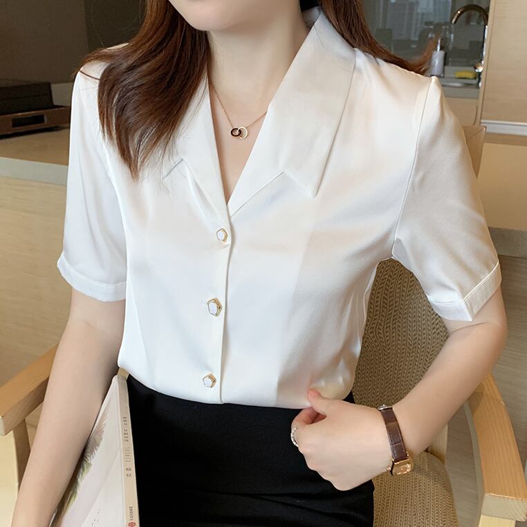 トップス 開襟シャツ ブラウス 半袖 Vネック 襟付き ストレート 前開き きれいめ シンプル 大人 上品 おしゃれ お洒落 大人女子 こなれ感 エレガント 無地 夏 入学式 入園式 卒業式 卒園式 謝恩会 学校行事 ママスーツ 20代 30代 40代 ビジネス OL 通勤 着回し 普段使い 韓国系 インスタ映え サイズ S M L XL 2XL 色展開 白 ホワイト | Raforea