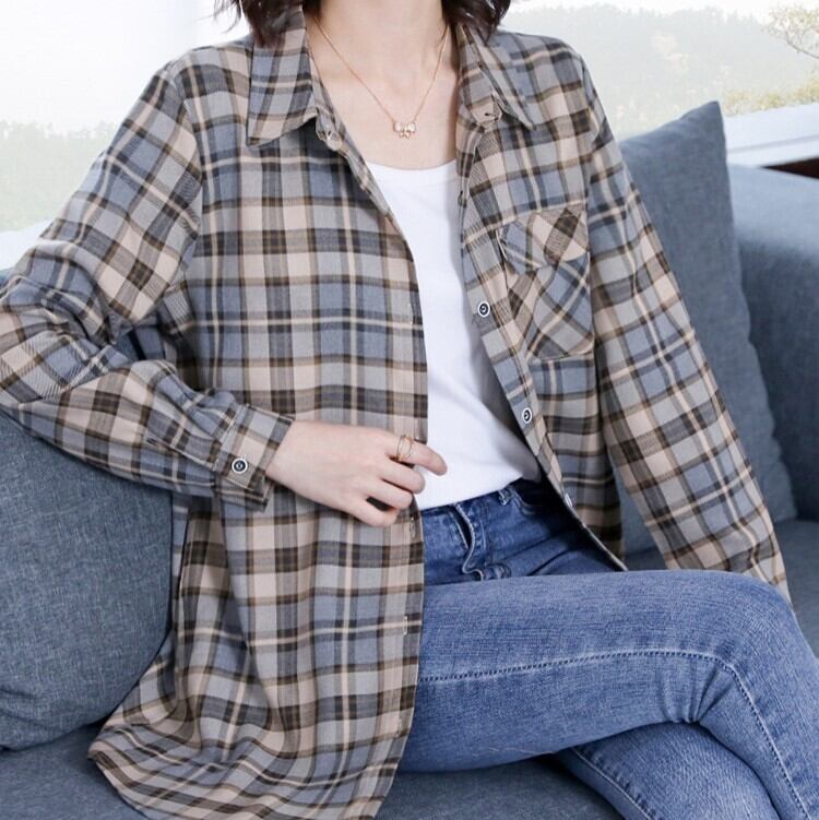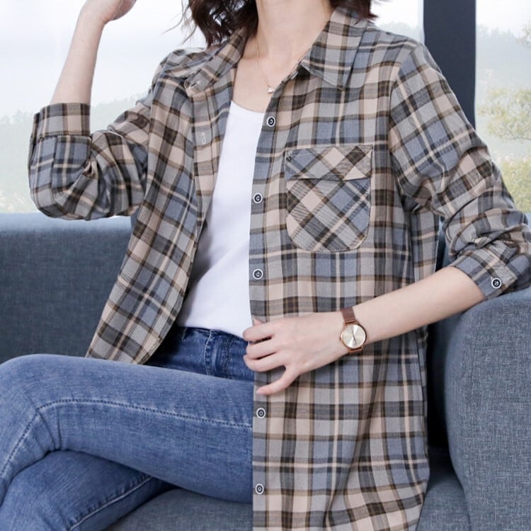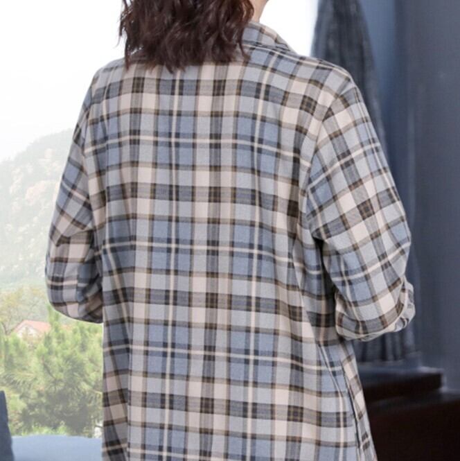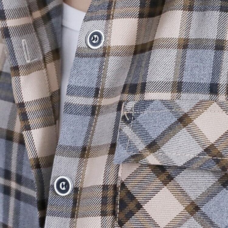 トップス アウター シャツ シャツワンピース 膝上 ミモレ丈 袖あり 長袖 襟付き 前開き 厚手 ベルベット カジュアル おしゃれ ラフ メンズライク チェック柄 秋 冬 10代 20代 30代 レディース 学生 お出かけ 休日 アウトドア 旅行 着回し 普段使い 重ね着 体系カバー L XL 2XL 3XL 4XL 5XL 大きいサイズ ベージュ 大人カラー 秋カラー | Raforea
