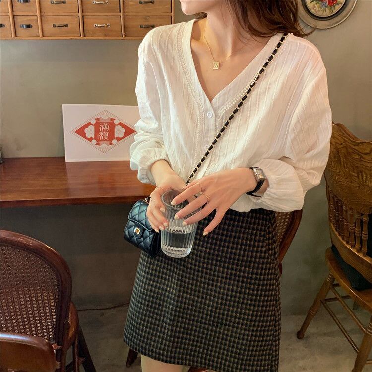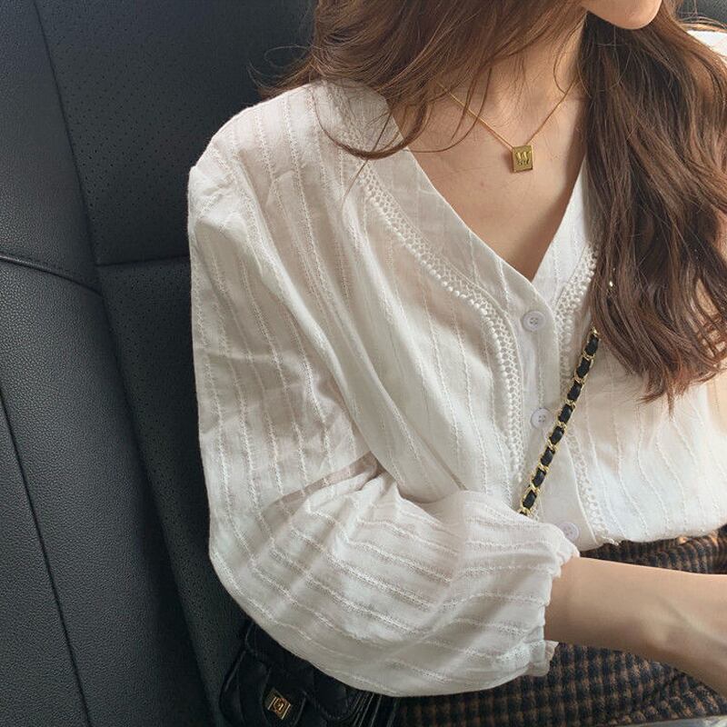トップス シャツ Vネック 袖あり 長袖 ストレート ボタン かわいい 大人可愛い きれいめ カジュアル おしゃれ 大人女子 こなれ感 抜け感 存在感 個性的 キュート ラフ ゆる 無地 春 秋 10代 20代 30代 40代 レディース 学生 ママ 女の子 デート お出かけ 女子会 休日 イベント 旅行 リゾート ホテル 普段使い 韓国系 コーデ スタイル 楽ちん 体系カバー モテ プレゼント ギフト 誕生日 S M L XL ホワイト | Raforea