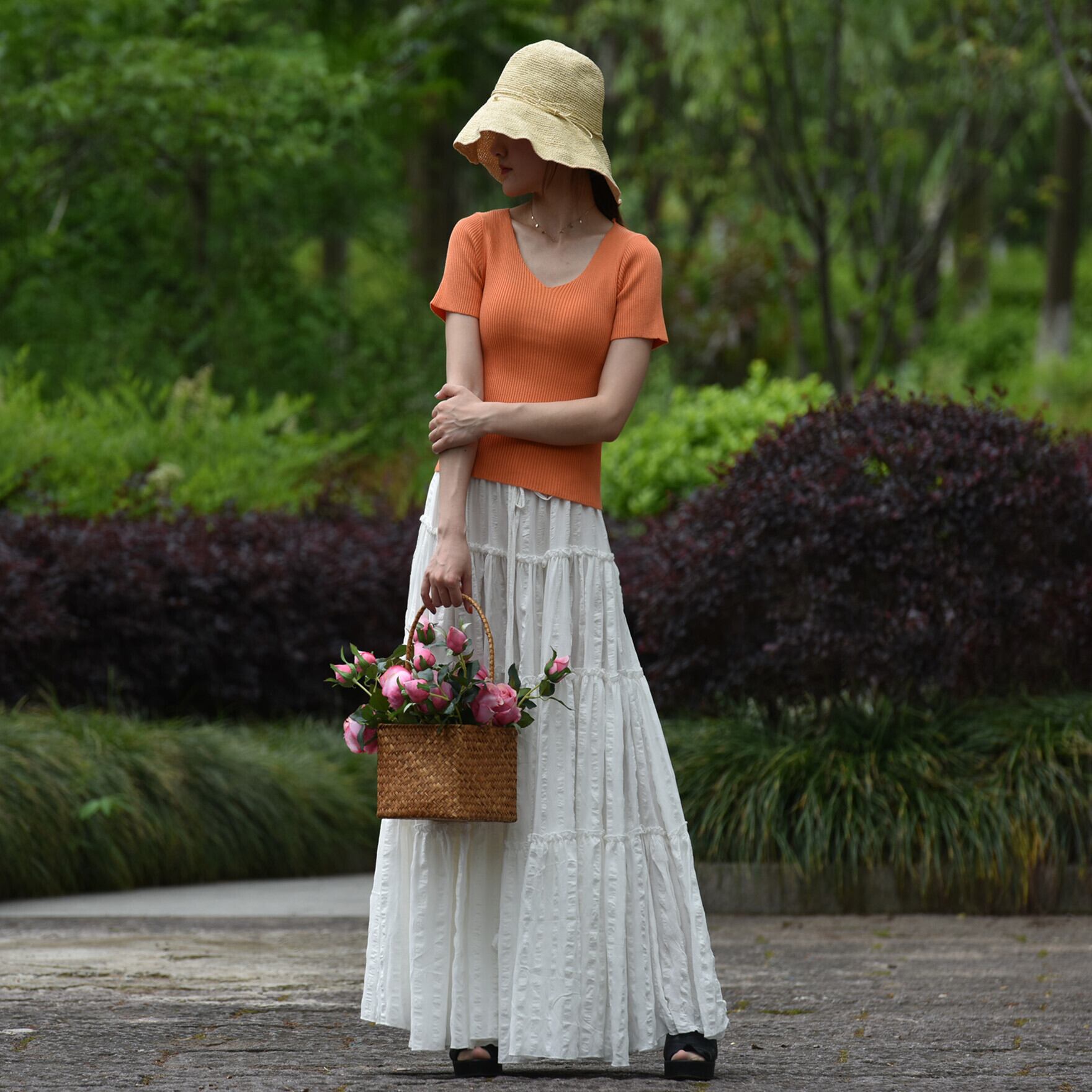 スカート ロングスカート フレアスカート ロング丈 9分丈 フレア Aライン 刺繍 綿 大人 上品 レトロ ラフ モード系 存在感 小花柄 春 夏 秋 30代 40代 50代 お出かけ 女子会 休日 普段使い 楽ちん サイズ S M L XL 2XL ホワイト ブラック レッド ワインレッド ロイヤルブルー ダークグリーン ブルーグレー | Raforea
