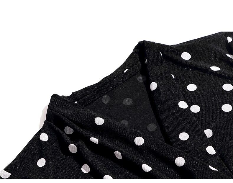 トップス ブラウス カットソー 袖あり 長袖 Vネック 襟なし スリム ポリアミド繊維 シンプル カジュアル 大人 レトロ こなれ感 水玉 春 夏 秋 30代 40代 50代 お出かけ 女子会 休日 普段使い サイズ M L XL 2XL 3XL 4XL 色展開 黒 | Raforea