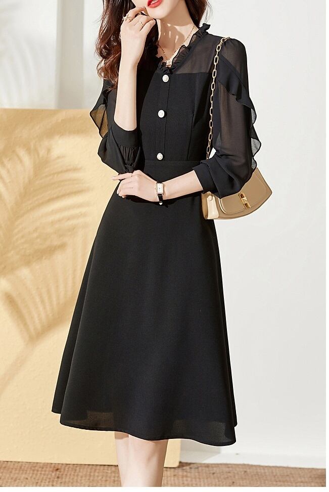 ワンピース ワンピドレス ひざ丈 袖あり 長袖 Vネック Aライン フリル 透け感 シースルー 大人可愛い きれいめ 大人 上品 おしゃれ お洒落 大人可愛い 大人女子 セクシー エレガント 無地 春 夏 結婚式 二次会 披露宴 10代 20代 30代 レディース 女性用 デート お出かけ パーティー イベント ファッション コーデ スタイル モテ インスタ映え S M L XL 2XL 黒 ブラック | Raforea