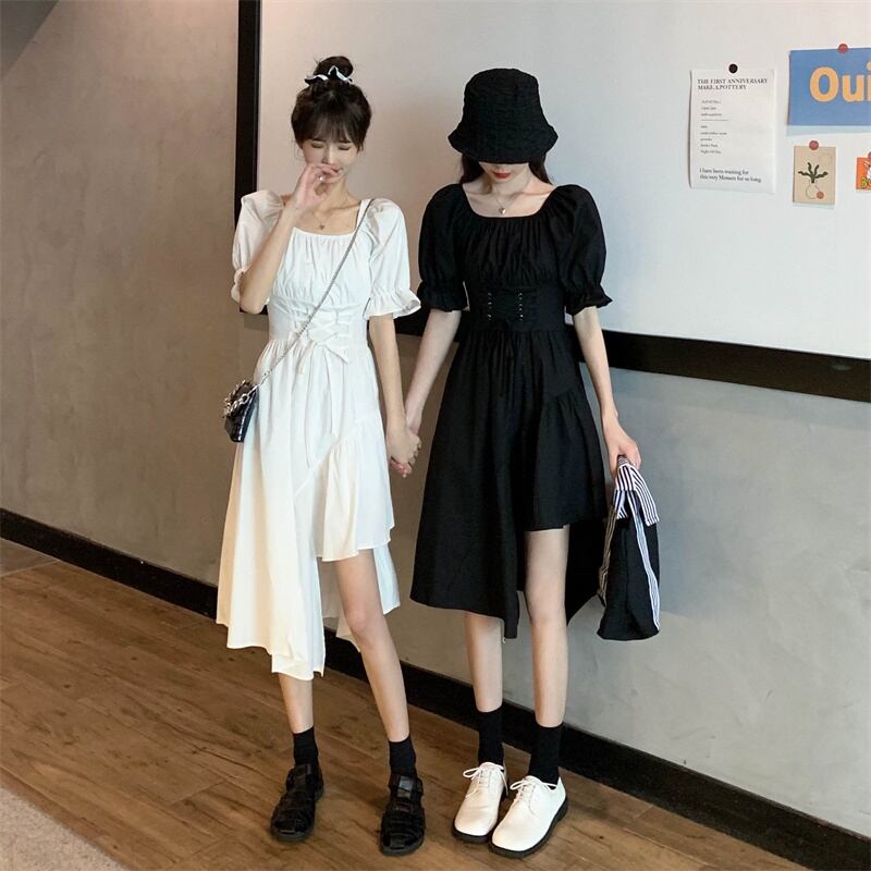 ワンピース カットソー クロップド 白トップス プリーツ アシンメトリー 膝上 膝下 袖あり 半袖 パフスリーブ ラウンドネック セミフレア Aライン ウエストマーク 裏起毛 かわいい シンプル カジュアル おしゃれ エキゾチック 個性的 モード系 存在感 無地 春 夏 秋 10代 20代 デート お出かけ パーティー イベント コーデ 楽ちん サイズ S M L XL 色展開 白 黒 | Raforea