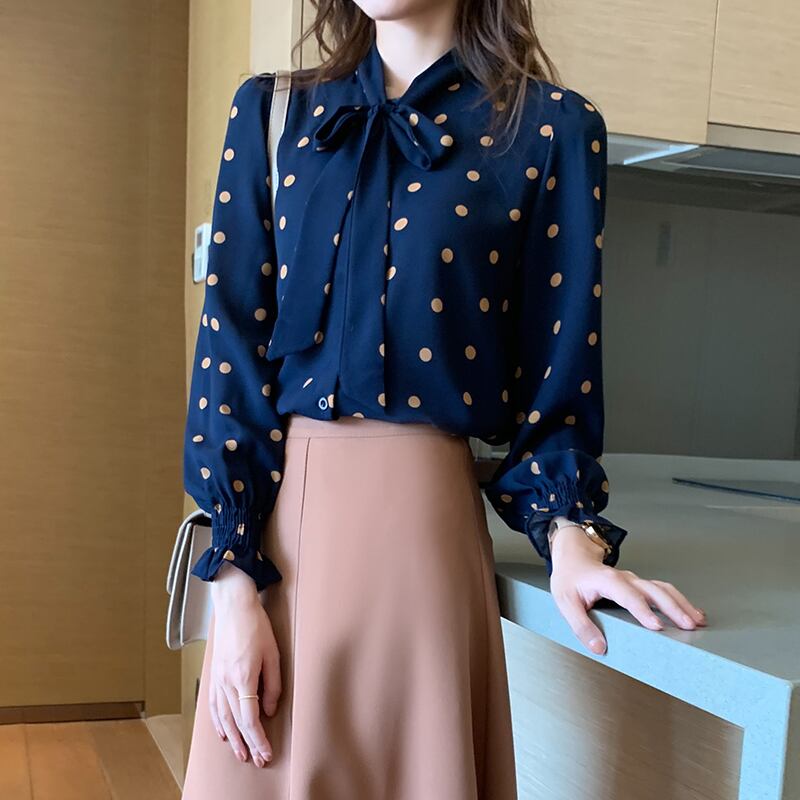 トップス シャツ ブラウス 袖あり 長袖 Vネック シフォン リボン 薄手 大人可愛い きれいめ 大人 上品 おしゃれ レトロ 大人女子 こなれ感 ドット柄 水玉 春 10代 20代 30代 レディース オフィス OL 通勤 お出かけ 着回し 普段使い お揃い 韓国 モテ 新作 S M L XL 2XL 白 ホワイト 青 ブルー ベージュ 水色 | Raforea