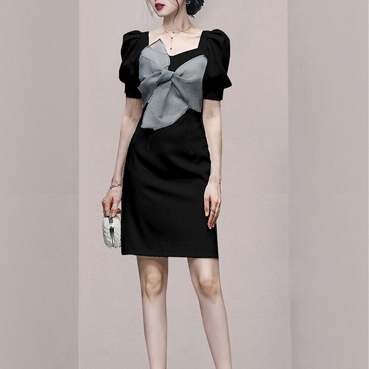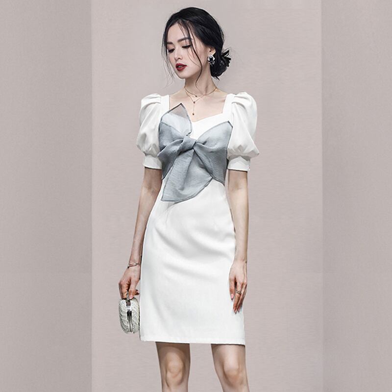 ワンピース タイトスカート ミニ丈 ショート丈 袖あり 半袖 パフスリーブ スクエアネック スリム タイト 細身 リボン 大人可愛い きれいめ シンプル 大人 上品 おしゃれ お洒落 かっこいい 個性的 クール モード系 主役級 存在感 無地 春 夏 秋 冬 オールシーズン 10代 20代 30代 40代 50代 レディース 女性用 OL 学生 通学 デート お出かけ 女子会 休日 パーティー イベント リゾート ホテル レストラン トレンド インスタ映え S M L XL ホワイト | Raforea