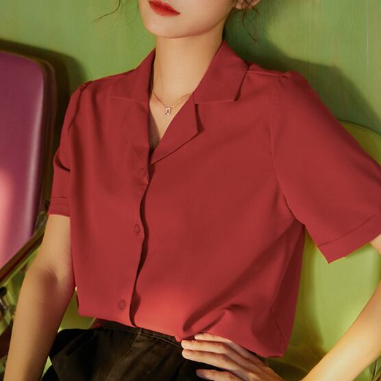 トップス シャツ ブラウス 袖あり 半袖 襟付き タイト 前開き かわいい 大人可愛い きれいめ シンプル カジュアル 大人 上品 おしゃれ お洒落 レトロ 大人可愛い 大人女子 こなれ感 ラフ メンズライク クール とろみ感 抜け感 無地 学生 通学 デート お出かけ 女子会 休日 着回し 普段使い 韓国系 オルチャン ファッション コーデ モテ トレンド 色展開 くすみカラー 大人カラー | Raforea