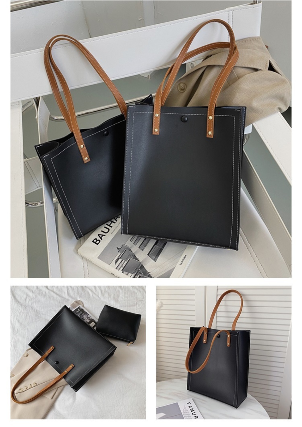 バッグ トートバック ビジネスバッグ スクエア型 PU シンプル 大人 お洒落 かっこいい こなれ感 モード系 無地 20代 30代 40代 50代 ビジネス OL 通勤 高見え 安い オールシーズン サイズ 大きめ 色展開 白 黒 | Raforea