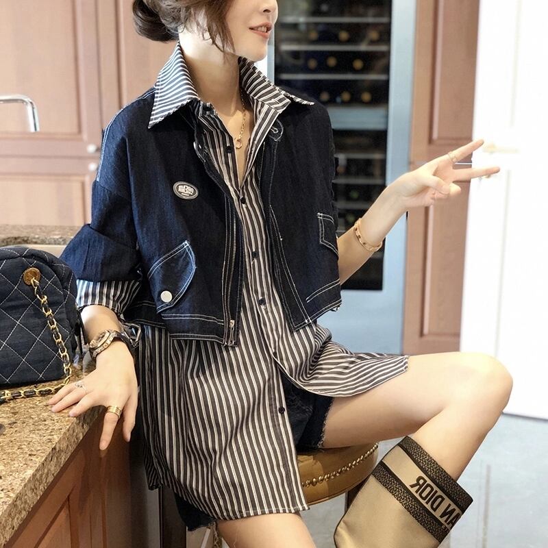 トップス アウター シャツ Gジャン 袖あり 長袖 Vネック 襟付き 前開き 2way デニム 2点セット かわいい 大人可愛い きれいめ シンプル カジュアル 大人 おしゃれ お洒落 ラフ スポーティー 個性的 セクシー 主役級 存在感 無地 ストライプ 春 秋 冬 10代 20代 30代 40代 レディース 女性用 OL 学生 通学 デート お出かけ 女子会 お泊まり 休日 イベント 旅行 着回し 普段使い トレンド インスタ映え M L XL 2XL 3XL 4XL | Raforea