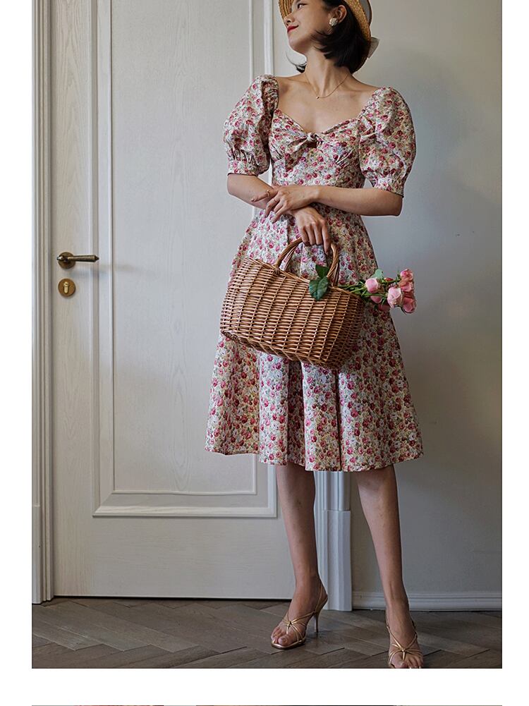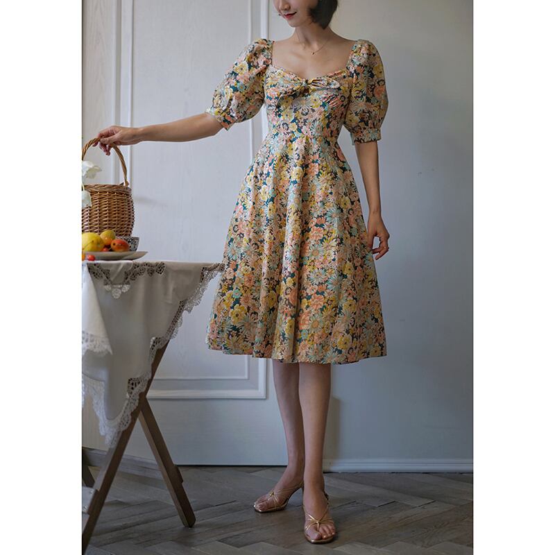 ワンピース フレアワンピース ワンピドレス ひざ丈 ミディアム丈 袖あり 半袖 5分袖 パフスリーブ スクエアネック フレア Aライン ウエストマーク ハイウエスト かわいい 大人可愛い きれいめ 大人 上品 おしゃれ レトロ 大人可愛い 大人女子 こなれ感 ラブリー キュート ガーリー 個性的 エレガント モダン 主役級 存在感 花柄 小花柄 フラワー 春 夏 レディース ビジネス OL 通勤 学生 通学 デート お出かけ 女子会 リゾート 旅行 モテ XS S ピンク イエロー | Raforea
