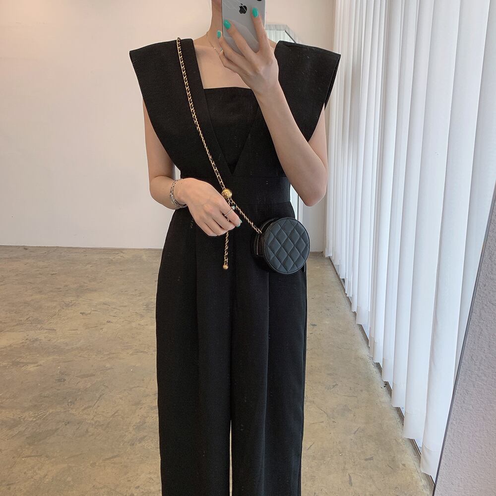 パンツ丈の長いオールインワン。