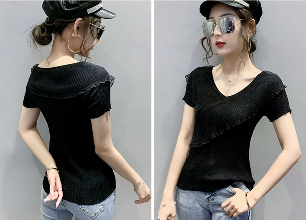 トップス シャツ カットソー 袖あり 半袖 Vネック フリル かわいい 大人可愛い きれいめ シンプル 大人 上品 おしゃれ お洒落 大人可愛い 大人女子 こなれ感 ラブリー エレガント 主役級 存在感 無地 春 夏 10代 20代 30代 OL 学生 デート お出かけ 着回し 普段使い 韓国 韓国系 ファッション コーデ スタイル モテ インスタ映え S M L XL 白 ホワイト 黒 ブラック 青 ブルー ピンク アプリコット | Raforea