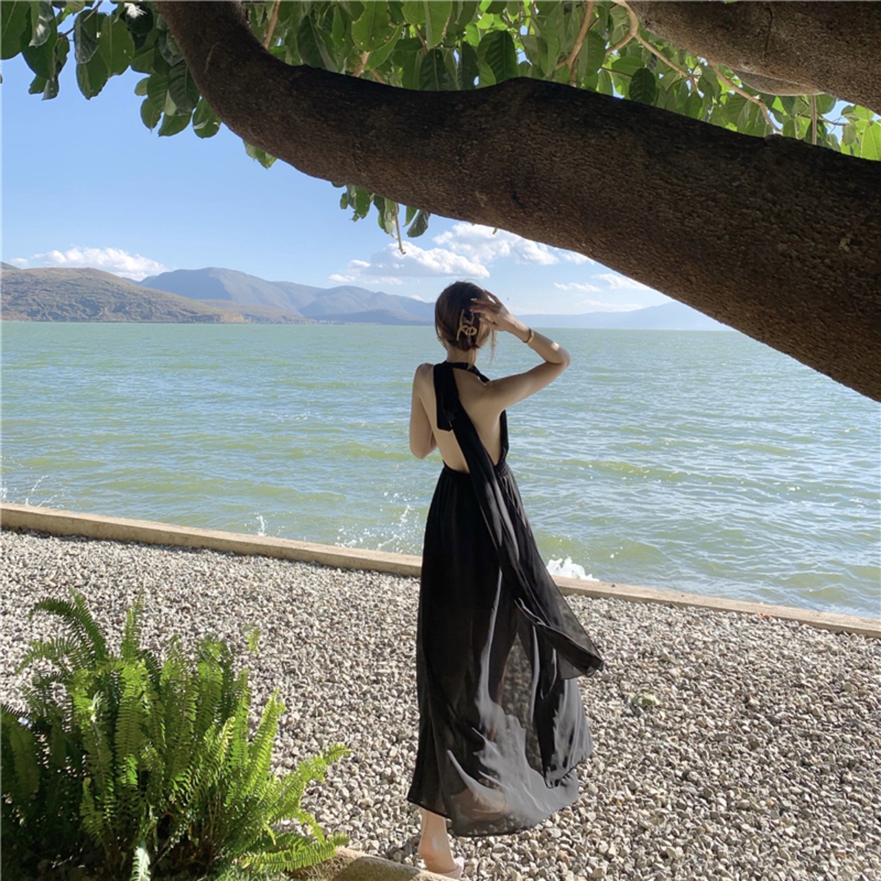 ワンピース ワンピドレス ロング ロング丈 袖なし ノースリーブ Vネック Aライン ハイウエスト 透け感 きれいめ 大人 おしゃれ お洒落 かっこいい 大人女子 こなれ感 個性的 クール セクシー エレガント 主役級 存在感 とろみ感 無地 春 夏 10代 20代 30代 パーティー イベント リゾート 海 ファッション コーデ スタイル モテ インスタ映え S M L 黒 ブラック