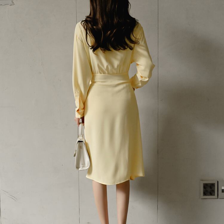 ワンピース フレアワンピース ワンピドレス 膝下 ミモレ丈 ミディアム丈 袖あり 長袖 Vネック 襟付き Aライン リボン ウエストマーク ウエストリボン ポケット ハイウエスト 前開き かわいい 大人可愛い きれいめ 大人 上品 おしゃれ レトロ エスニック エキゾチック 大人可愛い 大人女子 こなれ感 ラブリー キュート ガーリー エレガント モダン 主役級 存在感 とろみ感 抜け感 無地 春 夏 レディース ビジネス OL 通勤 デート お出かけ 女子会 休日 S M L XL イエロー 黄色 | Raforea