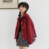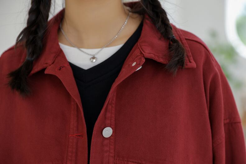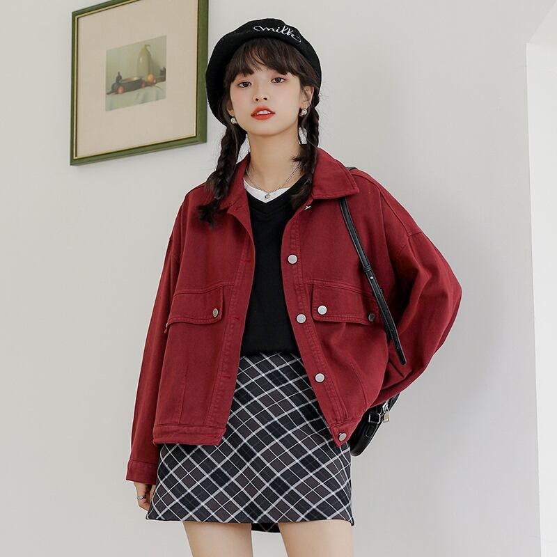 アウター ジャケット Gジャン 袖あり 長袖 襟付き 前開き 大人可愛い きれいめ シンプル カジュアル 大人 上品 おしゃれ お洒落 アジアン ラフ メンズライク マニッシュ ボーイッシュ 個性的 主役級 存在感 無地 秋 冬 10代 20代 30代 40代 レディース 女性用 OL 通勤 学生 通学 デート お出かけ 公園デビュー 女子会 お泊まり 休日 アウトドア イベント 旅行 着回し 普段使い トレンド インスタ映え S M L ブラック レッド | Raforea