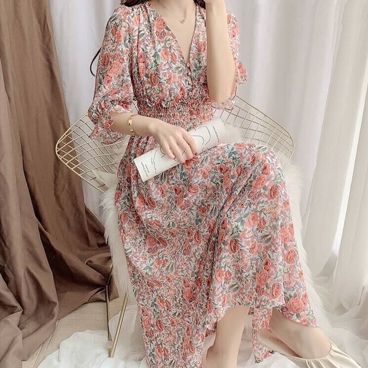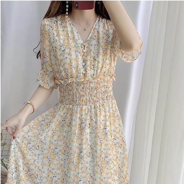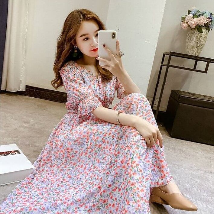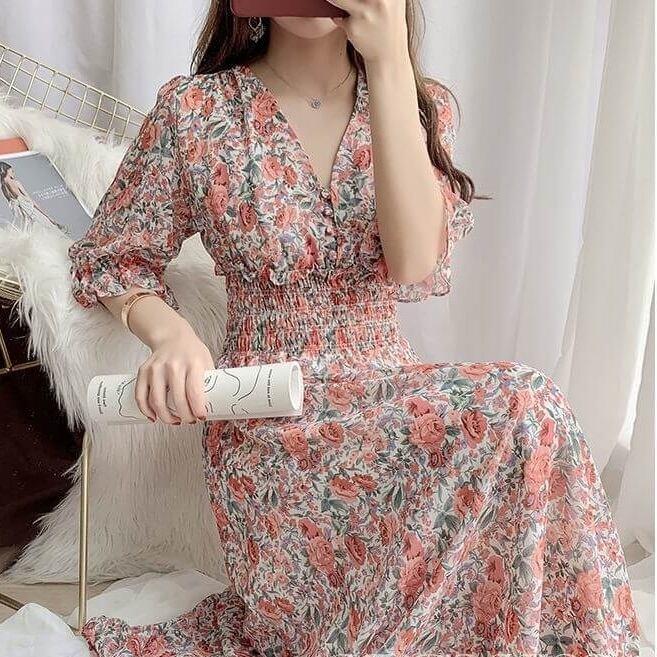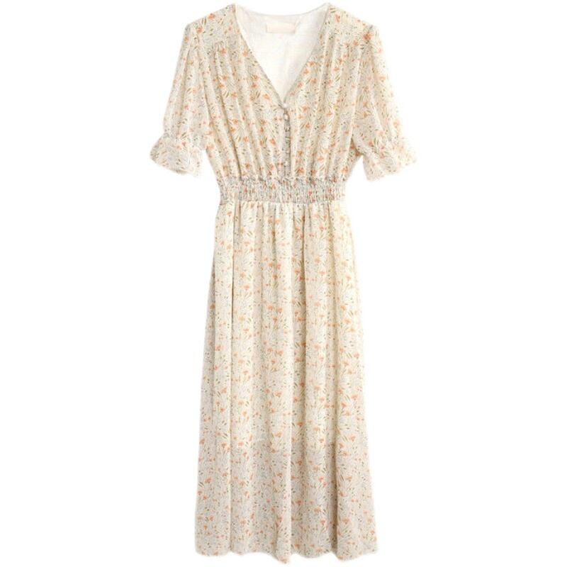ワンピース フレアワンピース 膝下 ロング ロング丈 袖あり 半袖 5分袖 五分袖 ボリューム袖 パフスリーブ Vネック フレア シフォン ハイウエスト ウエストゴム 大人可愛い きれいめ 上品 おしゃれ お洒落 大人女子 こなれ感 エレガント 存在感 花柄 小花柄 春 夏 秋 20代 30代 デート お出かけ 女子会 お泊まり 休日 リゾート 旅行 着回し 普段使い 脚長 S M L XL 2XL 3XL 大きいサイズ 色展開 イエロー 黄色 ホワイト 白 パープル 紫 サーモンピンク | Raforea